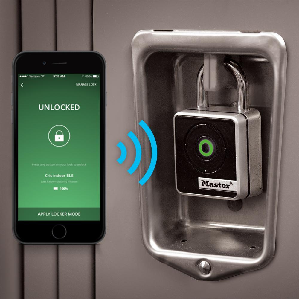 The Master Lock No. 4400D Bluetooth Smart Padlock features a 1-29/32 in. (47 mm) W metal body for durability. The 9/32 in. (7 mm) Dia shackle offers 7/8 in. (22 mm) vertical clearance and is made of boron alloy, offering maximum resistance to cutting and sawing. The smartphone/app interface offers speed, ease of use and greater control with the ability to share access, with keyless convenience. The locking mechanism features anti-shim technology, offering maximum security. The 1-Year Limited Warranty provides peace of mind from a brand you can trust.