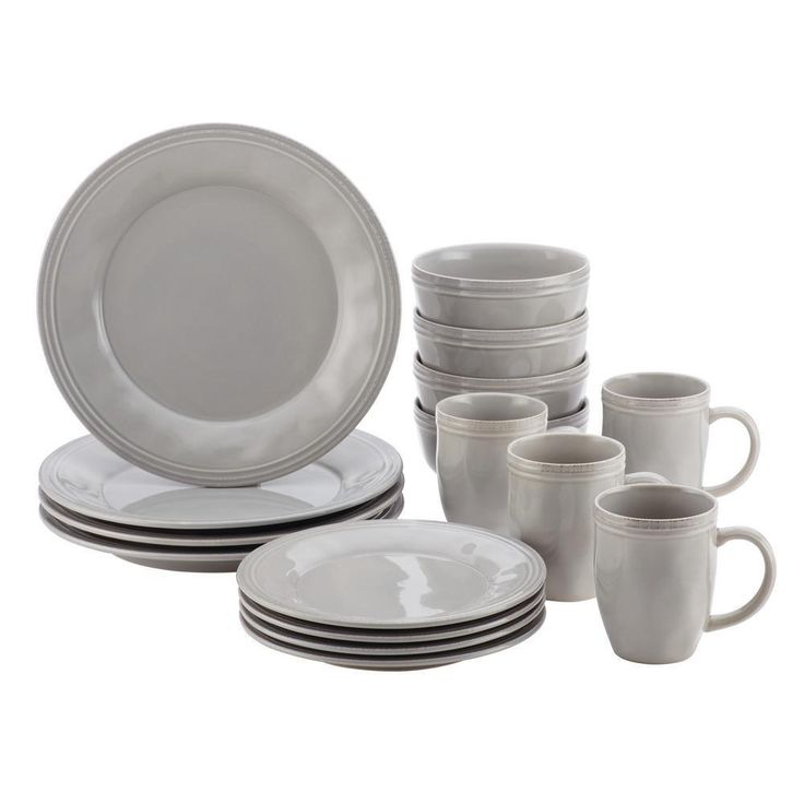 16-Piece Solid Sea Salt Gray Ceramic Dinnerware Set (Service for 16)