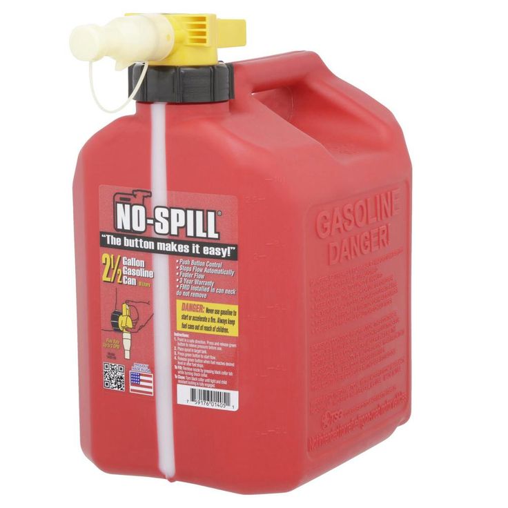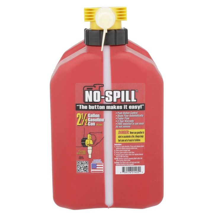 No Spill fuel cans feature a unique thumb controlled fuel spout for easy, controlled pouring. The design allows for more precise product fueling, reducing spills and overflows. High Flow Rate (up to 3 Gal. /min), CARB Compliant and Child Resistant.