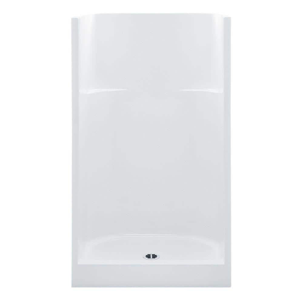 Choose from a wide range of sizes, ranging from 32 in. to 60 in., and stylish tile-pattern and smooth wall finishes with our versatile shower selection. Made with Acrylx applied -Acrylic finish and reinforced with Armorcore, our Everyday line now includes Aquatic's exclusive ArmorCore bottom reinforcement. This 1-piece shower design features two integral shelves, a center drain, and a smooth, scratch-resistant surface that is easy to clean. Installation is easy with the direct-to-stud method, and our products are backed by a lifetime limited residential warranty. Center drain and enclosure opening measures 37-3/4 in. (not included).