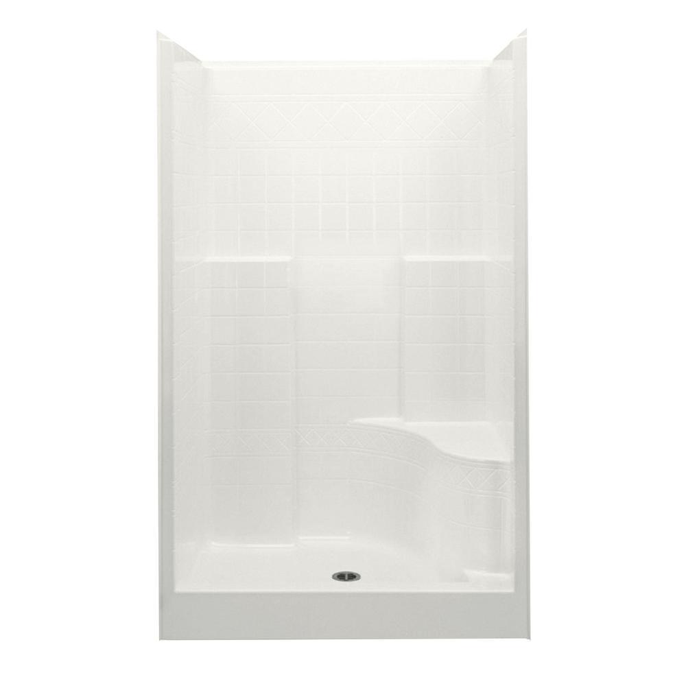 Everyday Diagonal Tile AFR 48 in. x 36 in. x 79 in. 1-Piece Shower Stall with Right Seat and Center Drain in Biscuit