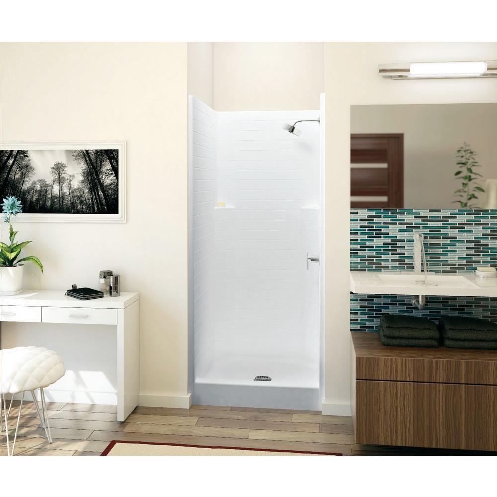 Everyday Subway Tile 36 in. x 36 in. x 80 in. 1-Piece Shower Stall with Center Drain in White