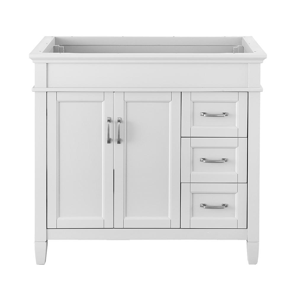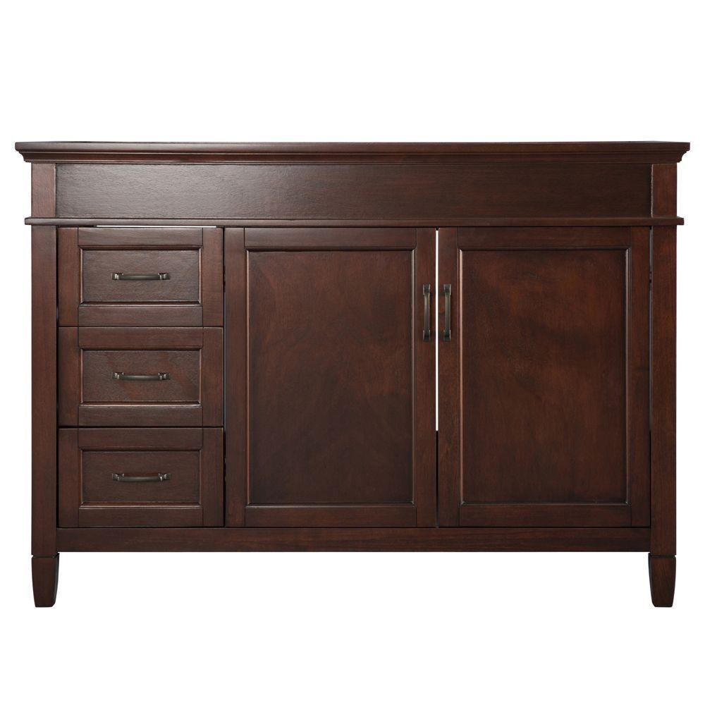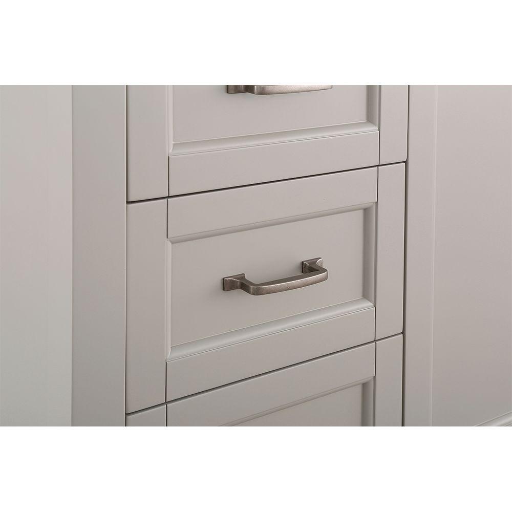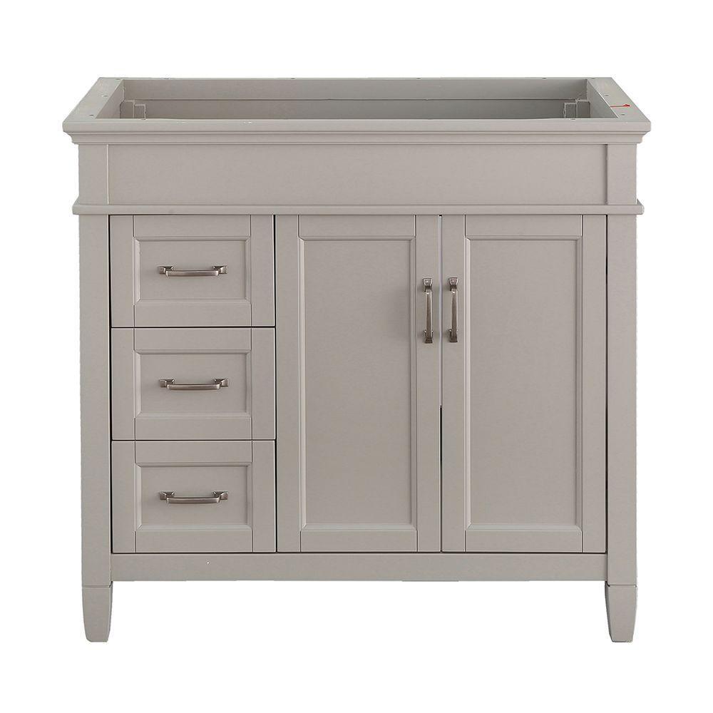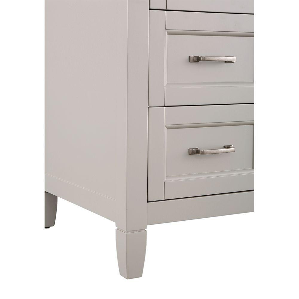 Enrich your bathroom ambience with this upscale 48 in. vanity that is more affordable than it looks. With an understated Grey finish and a clean, sleek profile, this modern piece has an understated elegance that will impress homeowners and guests alike. Two large cabinet doors with soft-stop bumpers and three left-side drawers open up a bevy of storage options for linens and bath essentials, setting the tone for a tidy powder room. The sturdiness and craftsmanship of this vanity cabinet will make you think it is custom-built, while small details like leg levelers instill confidence for perfectly stable setups. Gaze through the Foremost Ashburn collection for complementary Grey items like wall cabinets and mirrors for a complete bathroom makeover.