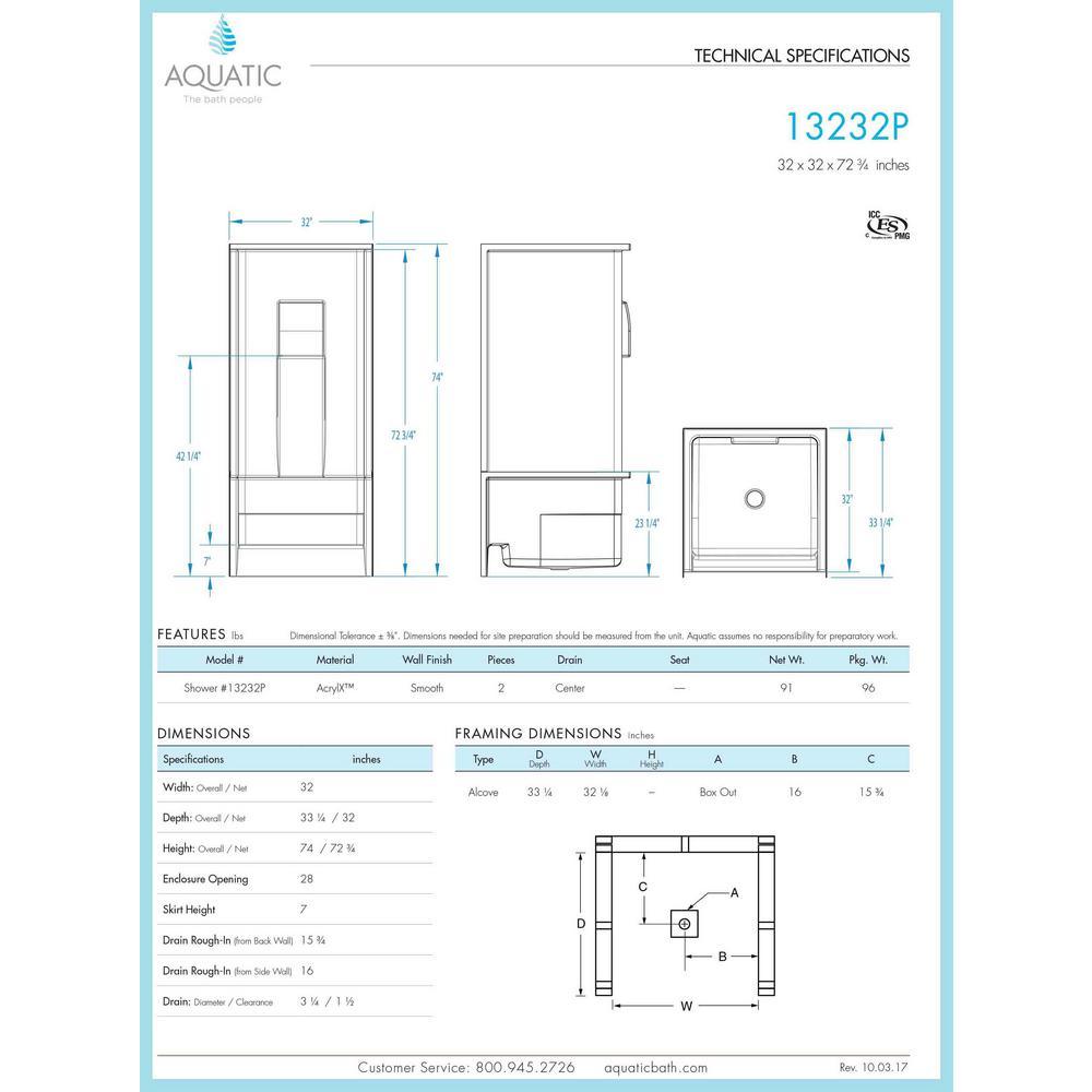 Convenience and elegance blend seamlessly in every Varia product. Ideal for remodeling projects, or applications where space is limited, Aquatic sectional products offer an easy to install and attractive bath solution. Our Varia products offer a front fastening system for ease of installation. This unit is crafted from an Acrylx applied -Acrylic finish reinforced with Armorcore. Our Varia products now come standard with Aquatic's exclusive ArmorCore bottom reinforcement; our newest manufacturing breakthrough. This unit is a 2-piece shower with an integrally molded shelf. We designed this unit with a small bath space in mind.