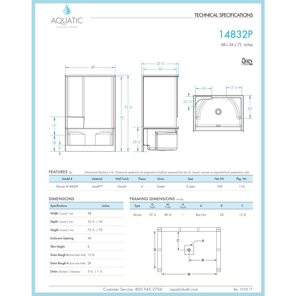 - Utilizes Aquatic’s innovative “Bathlock” front fastening system to join base to wall section from the front of unit, making installation a snap