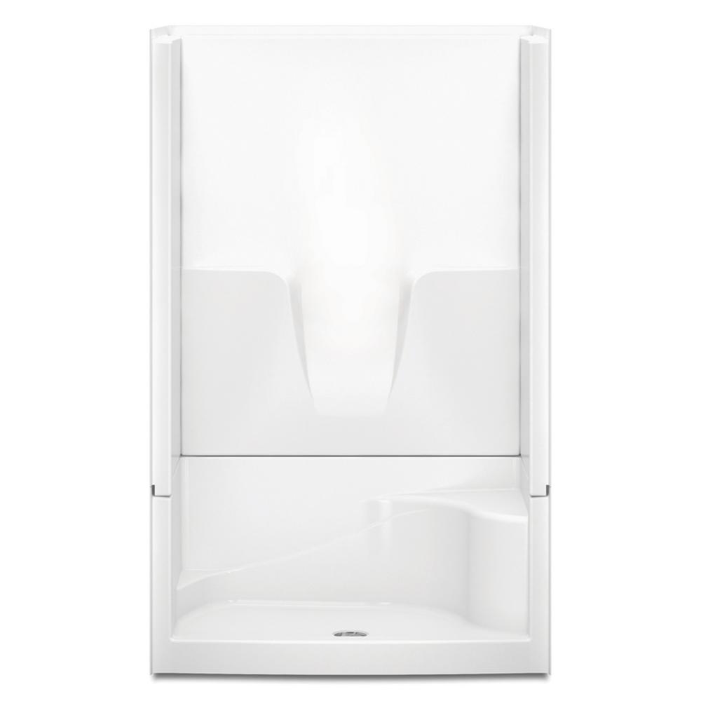 Convenience and elegance blend seamlessly in every Varia product. Ideal for remodeling projects or applications where space is limited, Aquatic sectional products offer an easy to install and attractive bath solution. Our Varia products offer a front fastening system for ease of installation. This unit is crafted from an Acrylx applied -Acrylic finish reinforced with Armorcore. Our Varia products now come standard with Aquatic's exclusive ArmorCore bottom reinforcement; our newest manufacturing breakthrough. This unit is a 4-piece shower, with 2 integrally molded shelves and left hand seat.