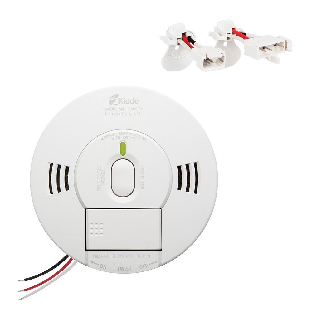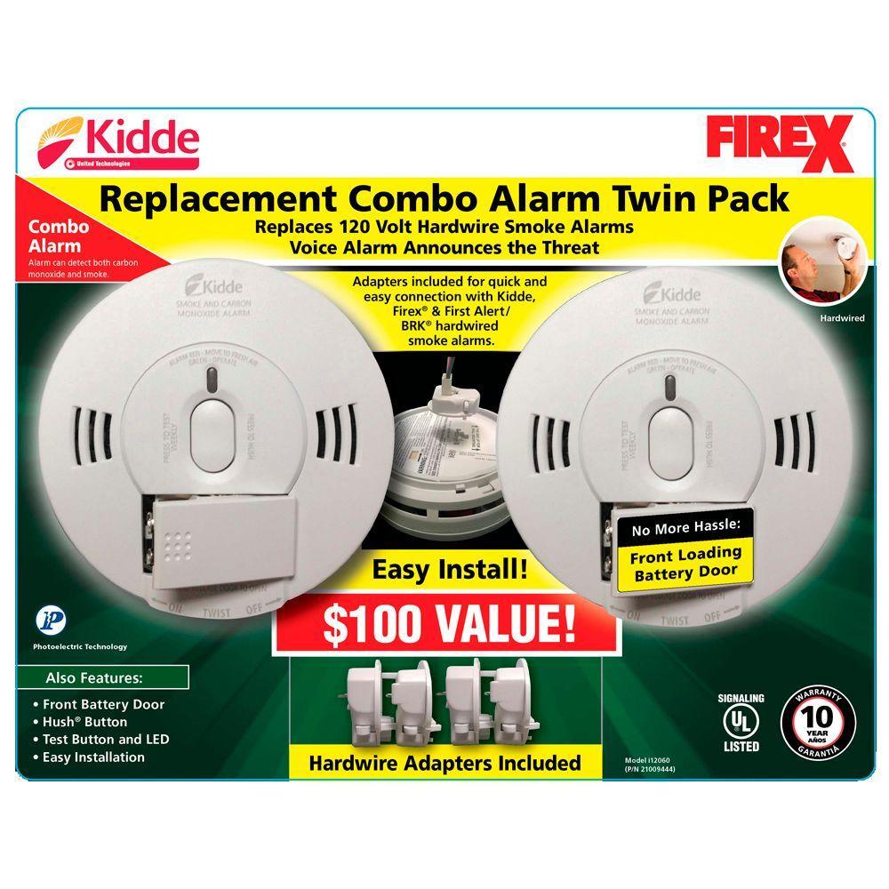 Kidde FireX Front-Loading Photoelectric Smoke and Carbon Monoxide alarm offers protection from 2 hazards, fire and CO in one unit. This AC-wire with battery backup alarm emits a beeping tone followed by a voice warning that clearly announces the danger by saying, “Fire” or “Warning Carbon Monoxide”. The uniquely designed front loading battery compartment makes battery replacement quick and easy, and ensures proper installation.