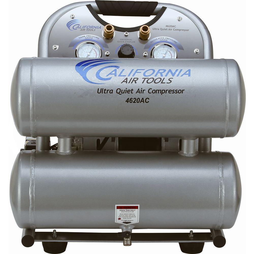 The California Air Tools 4620AC Ultra Quiet and Oil-Free Air Compressor is designed to be one of the quietest 2.0 HP air compressors in the industry having only 70 dB of sound. The Powerful "New" 2.0 HP (SP-9421) motor operates at only 1680 RPM creating less noise and less wear. The "New" SP Series of Ultra Quiet Air Compressor Motors have been designed to increase duty cycle and allow for longer continuous run times. The Oil-Free Dual Piston Pump System is engineered for high performance and durability. The CAT-4620AC Air Compressor has an Oil-Free Dual Piston pump designed to have a life cycle before wear of 3000 Plus hours compared to other comparable air compressors with life cycles of 500 hours or less. The Oil-Free pump allows for use in a variety of temperatures (cold starts) and uneven terrains (no oil in the pump). The Easy Start Valve feature allows for an easier start up using less starting amps. The Easy Start Valve releases a small amount of air from the pump at start up to produce a no-load condition allowing the motor to spin freely. This no-load start up requires less amps for an easier start up in cold temperatures. The large 4.6 Gal. Aluminum Air Tank is only 67.2 lbs. making it very easy to move around the jobsite. Designed for the person looking for Power, Air Flow, Less Service and Maintenance with at Least 30% Less Noise.