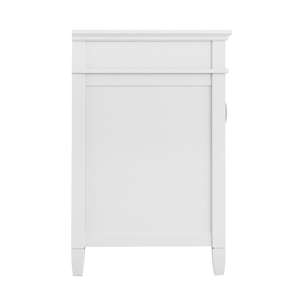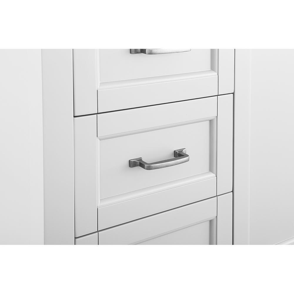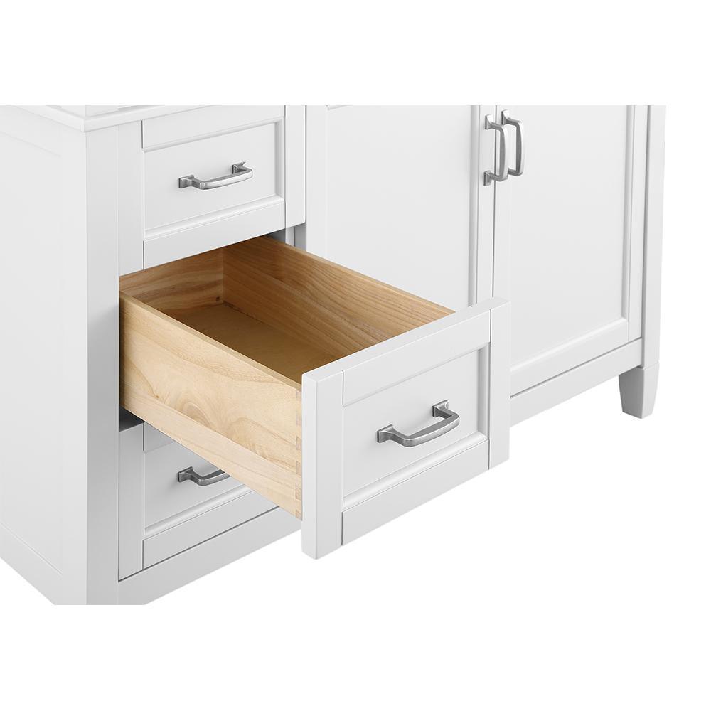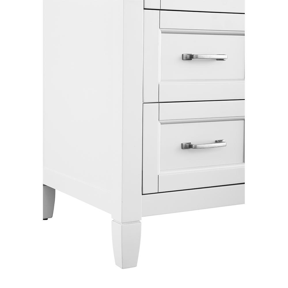Enrich your bathroom ambience with this upscale 48 in. W vanity that is more affordable than it looks. With a classic white finish and a clean, sleek profile, this modern piece has an understated elegance that will impress homeowners and guests alike. Two large cabinet doors with soft-stop bumpers and three left-side drawers open up a bevy of storage options for linens and bath essentials, setting the tone for a tidy powder room. The sturdiness and craftsmanship of this vanity cabinet will make you think it is custom-built, while small details like leg levelers instill confidence for perfectly stable setups. Gaze through the Foremost Ashburn collection for complementary white items like wall cabinets and mirrors for a complete bathroom makeover.