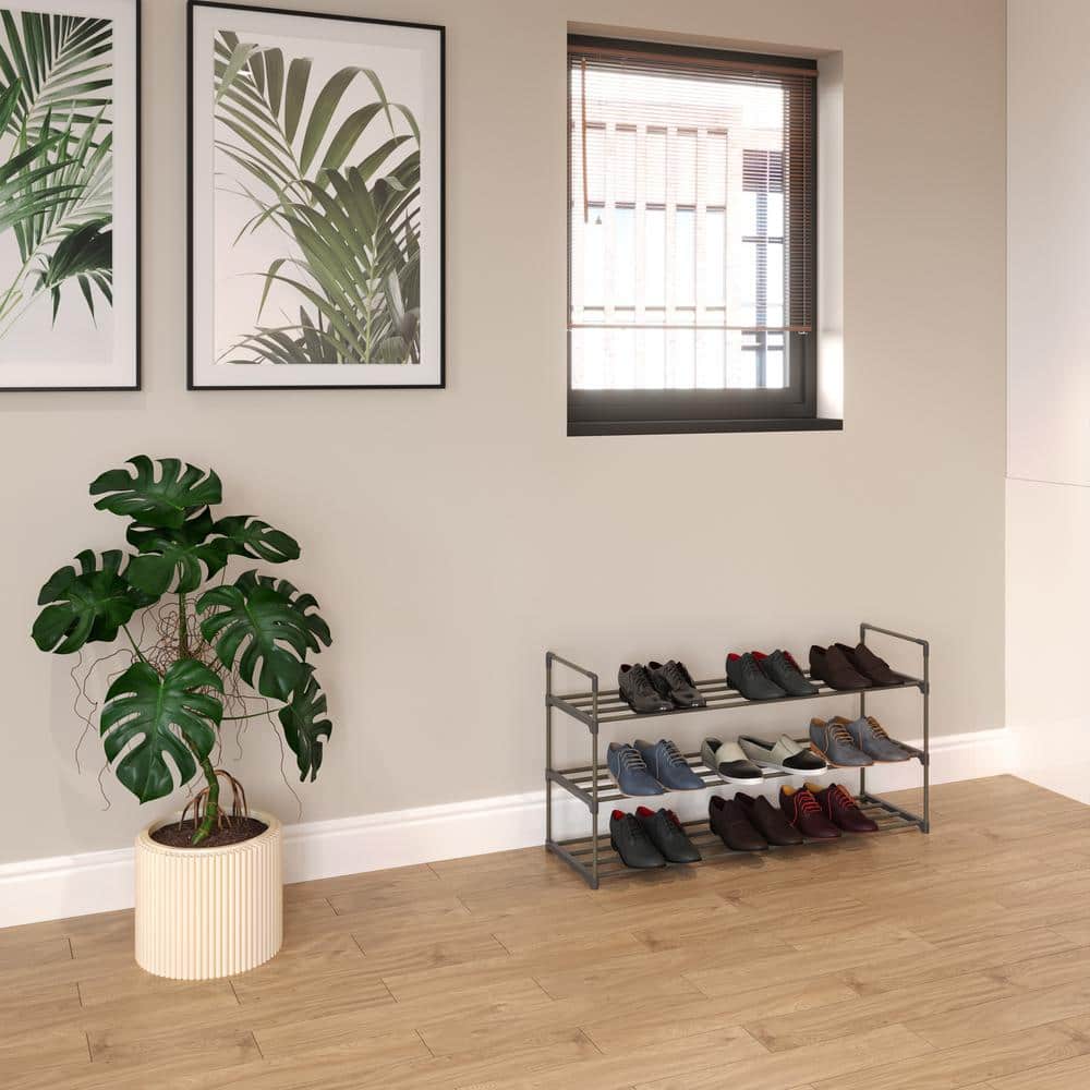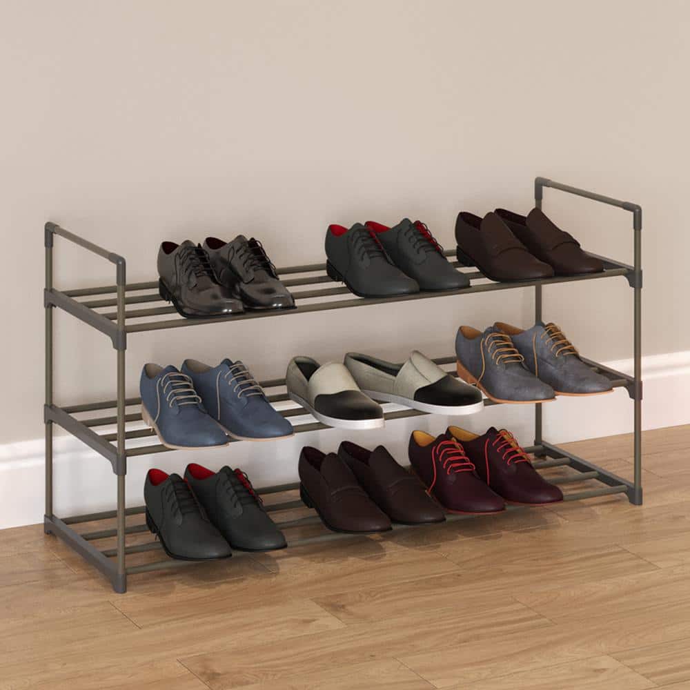 Maximize your space and style with ease—order your 15-Pair Gray 3-Tier Shoe Rack today!