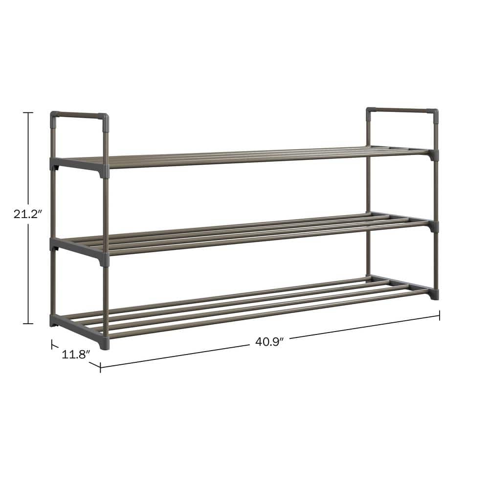 15-Pair Gray 3-Tier Shoe Rack