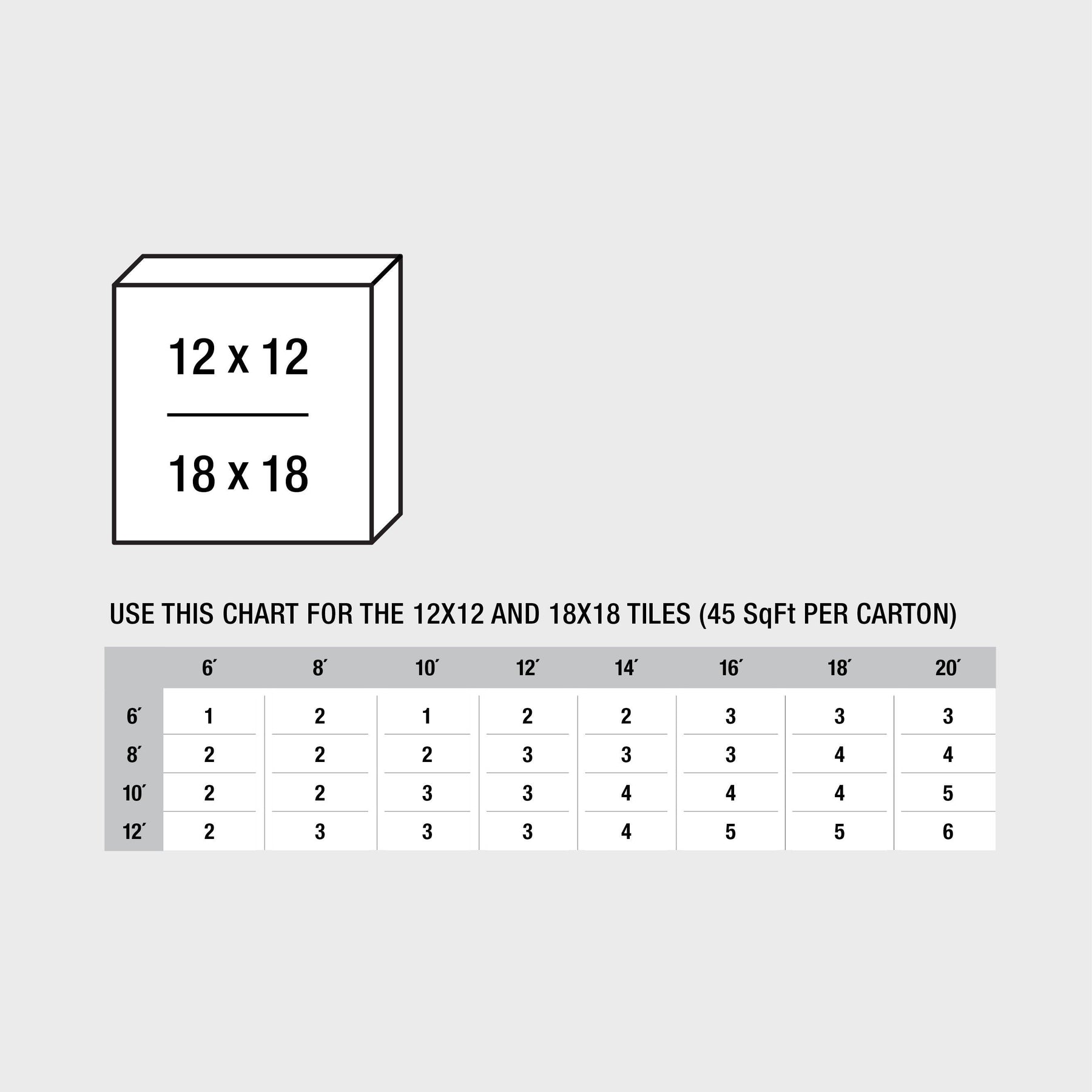 Generous Coverage: 45 sq ft per box; 18" x 18" tiles (20 per carton)