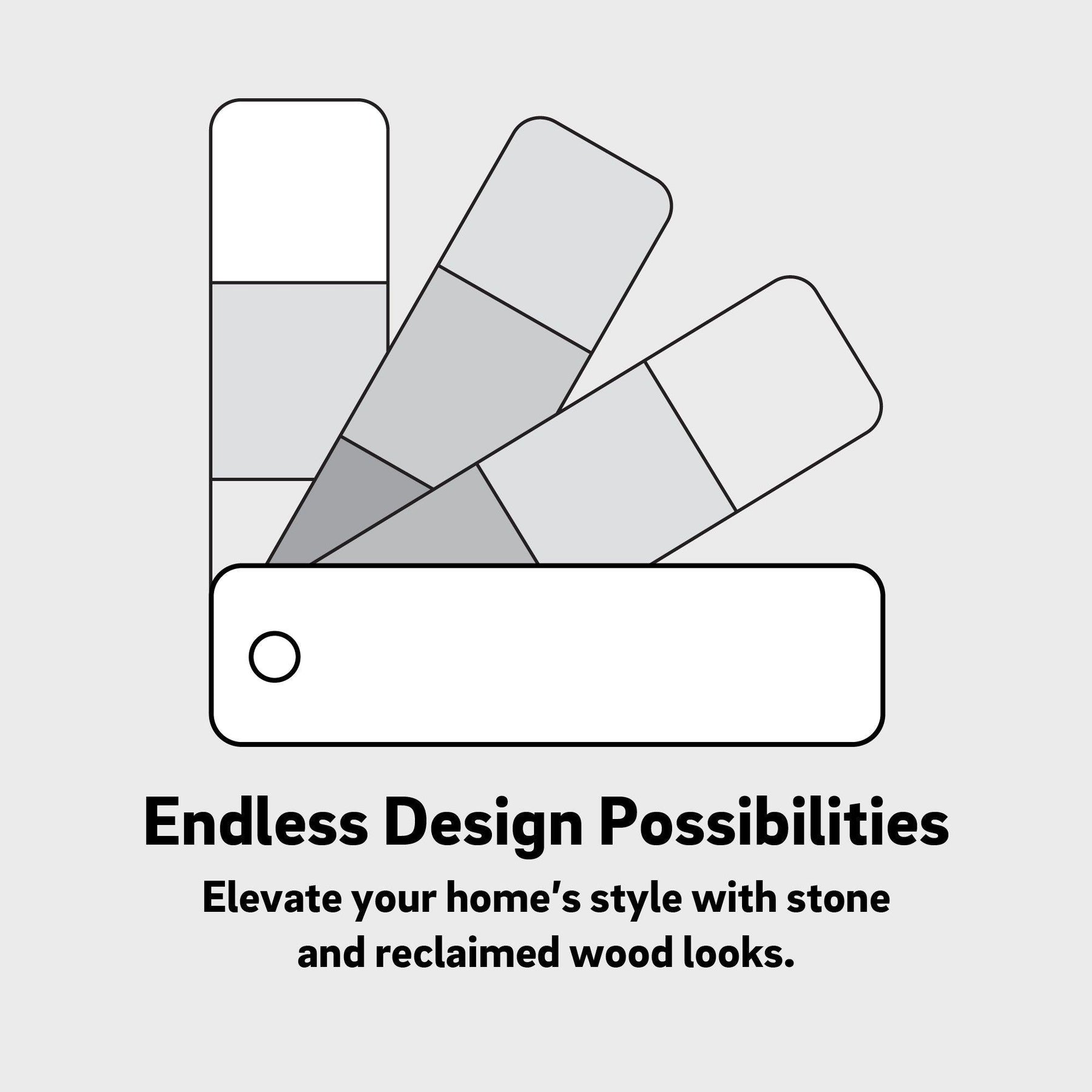 Armstrong Flooring’s 18 x 18 peel-and-stick vinyl tiles deliver durable style for high-traffic, high-moisture areas. Each 2 mm thick tile installs quickly without glue or drying time and resists stains and scuffs for easy upkeep. One carton covers 45 sq ft, ideal for fast DIY makeovers.