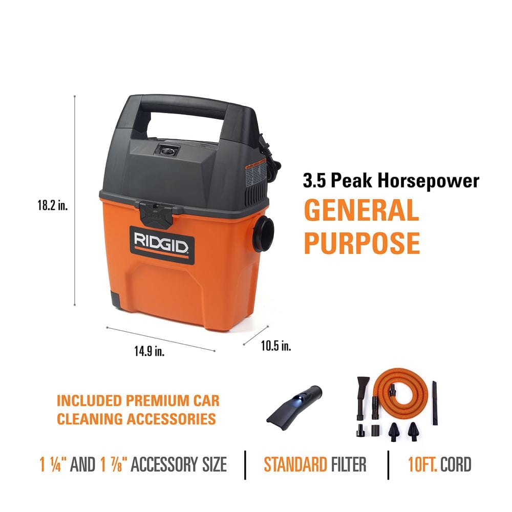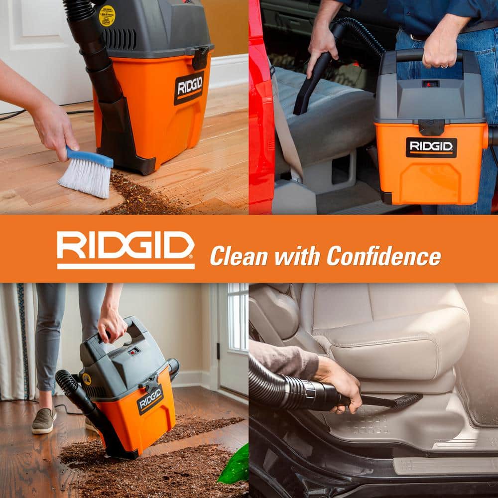 Maximize your cleaning efficiency with the RIDGID 3 Gal Wet Dry Vacuum. This compact yet powerful vacuum features a 3.5 Peak HP motor, specially designed for auto detailing and small cleanup tasks. Equipped with the innovative RIDGID SWEEP dustpan and a complete car cleaning kit, it's the perfect solution for car interiors and around the home projects.