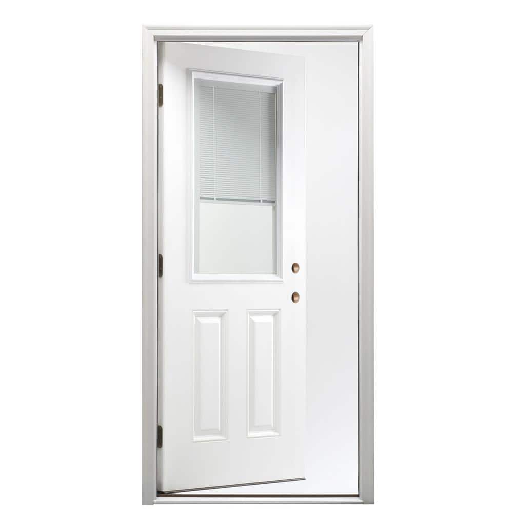 30 in. x 80 in. Internal Blinds Left-Hand 1/2-Lite Clear 2-Panel Classic Primed Fiberglass Smooth Prehung Front Door