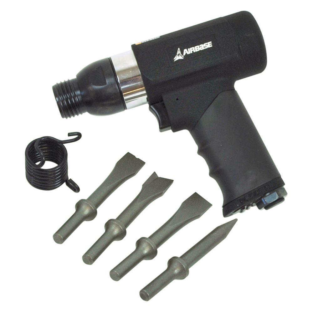 The Airbase by EMAX Industrial Composite Vibration-Dampening Air Hammer, 1/4 in. (Model: EATHM80S1P) is the perfect tool for tough automotive projects at home, in the shop, at the garage, or even the job site. Ideal for exhaust system work, metal shearing, front end work, bolt cutting and driving bushings. The Aribase Industrial Composite Vibration-Dampening Air Hammer offers 3,000 blows per minute. The body construction and special vibration diminishing design provides long time durability and comfort. All Airbase air tools offer the industry's best product support with a limited lifetime warranty.