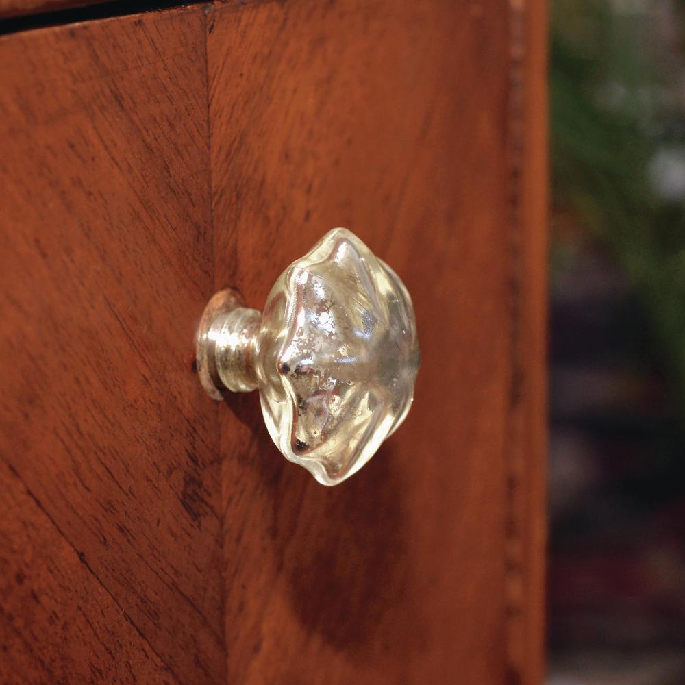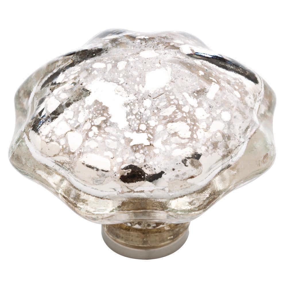 Antiqued mercury glass knob adds personality to a variety of wood finishes