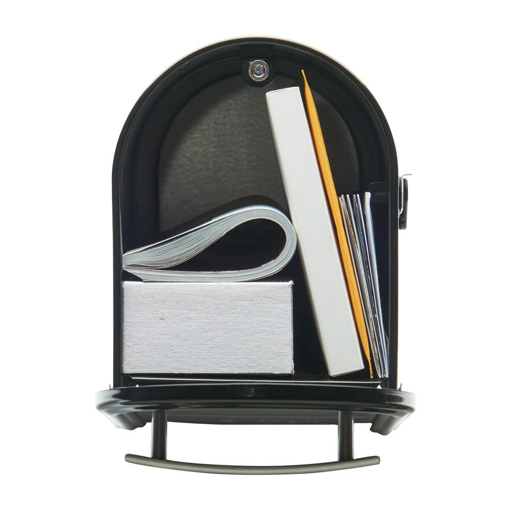 Classic styling paired with contemporary nickel accents and a smooth black finish give the Franklin a striking look. This medium-sized mailbox also holds plenty of mail, including magazines, padded envelopes and other deliverables. Its rust-resistant galvanized steel construction resists wear, while the powder-coated finish will retain its appearance for many years. The Franklin is sold fully assembled, making installation quick and easy.