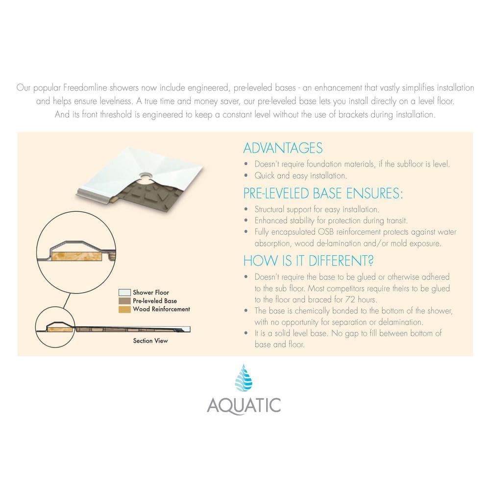 Regular price $2,210.98Maximize your project options with Aquatic's Accessible AcrylX 36 in. x 36 in. x 75 in. 1-Piece Shower Stall. This top-quality unit breaks barriers by offering both functionality and customizable design, making it the ideal choice for new construction. Its 1-piece design and AcrylX applied acrylic finish provide a sleek and durable finish, while the pre-leveled base ensures easy installation. Featuring a right-hand fold up seat and an L-shaped grab bar for safety, this shower is barrier-free when properly installed and comes with a 5-year limited residential warranty. Consider adding a vinyl flexible dam or removable threshold for improved water retention.
