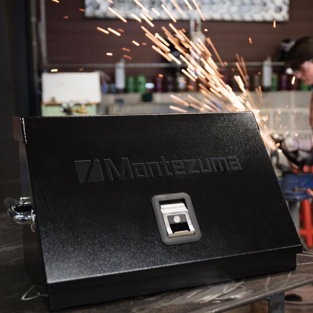 Portable Toolbox by Montezuma heavy-duty steel construction with welded seams, no spot welding, offers the best in rugged tool storage. Double side handles allow an easy transition from stationary to mobile as the lid secures tools in position when closed. Designated spaces for both metric and SAE tools, this box offers the best in storage for home and professional environments.
