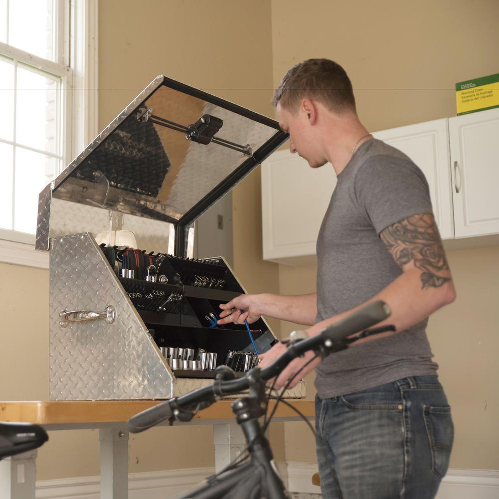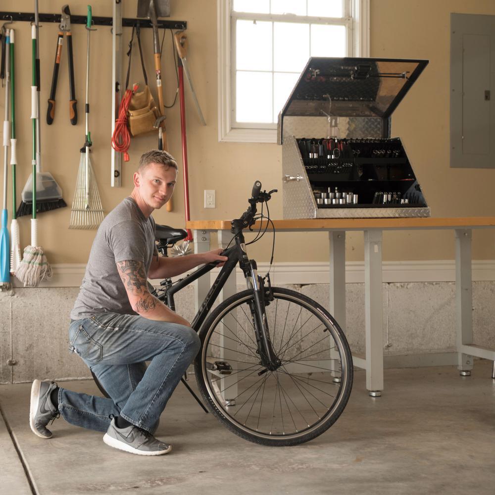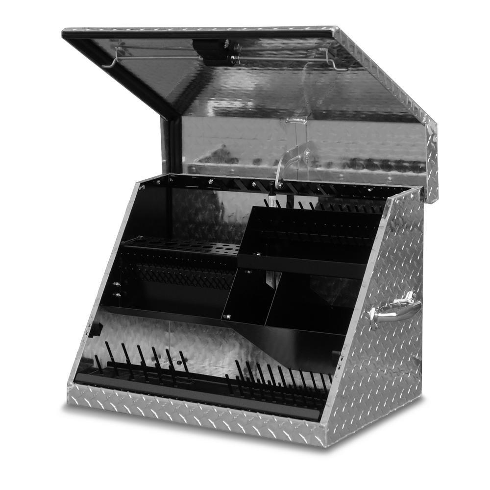 • Gas spring raises lid when unlatched for easy tool access lid secures tools in position when closed