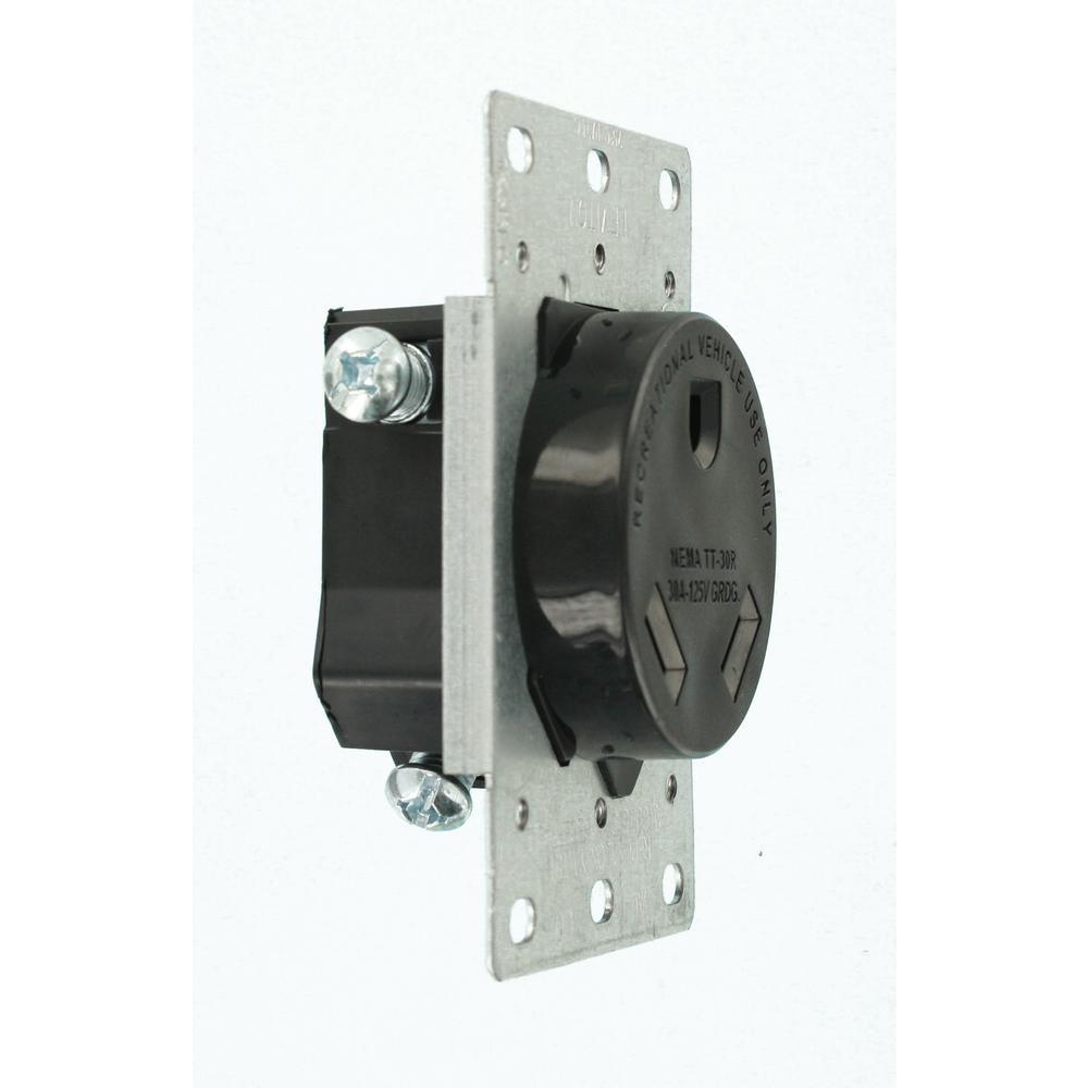 30 Amp Flush Mount Shallow Single Outlet, Black