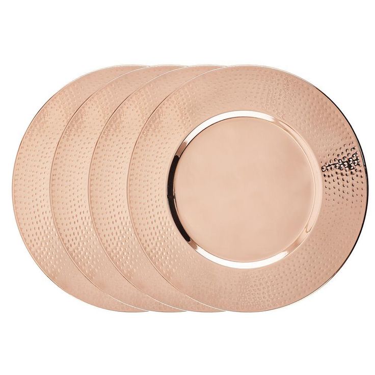 16 in. Decor Copper Charger Plate - Hammered Rim (Set of 4)