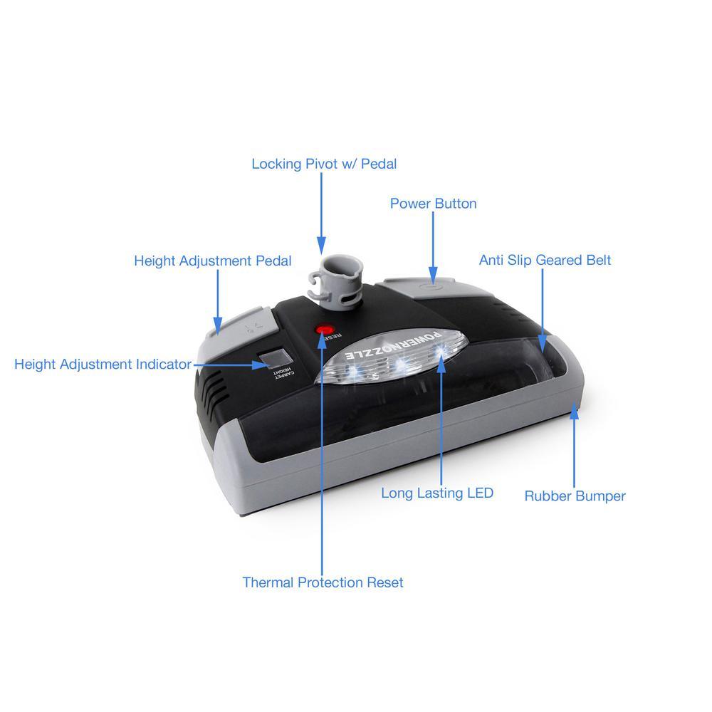 New black power nozzle Designed by GV for all Central vacuum units. This is a high end power nozzle with 6 levels of height adjustment, on/off switch, LED Lights, reset, rubber bumper to protect walls and viewing window so you can keep brush roll clean. The height adjustment allows you to easily transition from any hard floor surface to the thickest carpet. Led lights take low amount of power and are long lasting. Reset switch ensures longevity of your head by turning the motor off if the head becomes overworked or clogged. Fits any central vacuum system that has a 2 round prong cord. Fits most systems: Beam, Electrolux, Hayden, Nutone, Aggressor, AirVac, Eureka, Honeywell, Hoover, Royal and more. If your power nozzle/head DOES NOT have a cord coming out of the back, then this WILL NOT fit your current system.