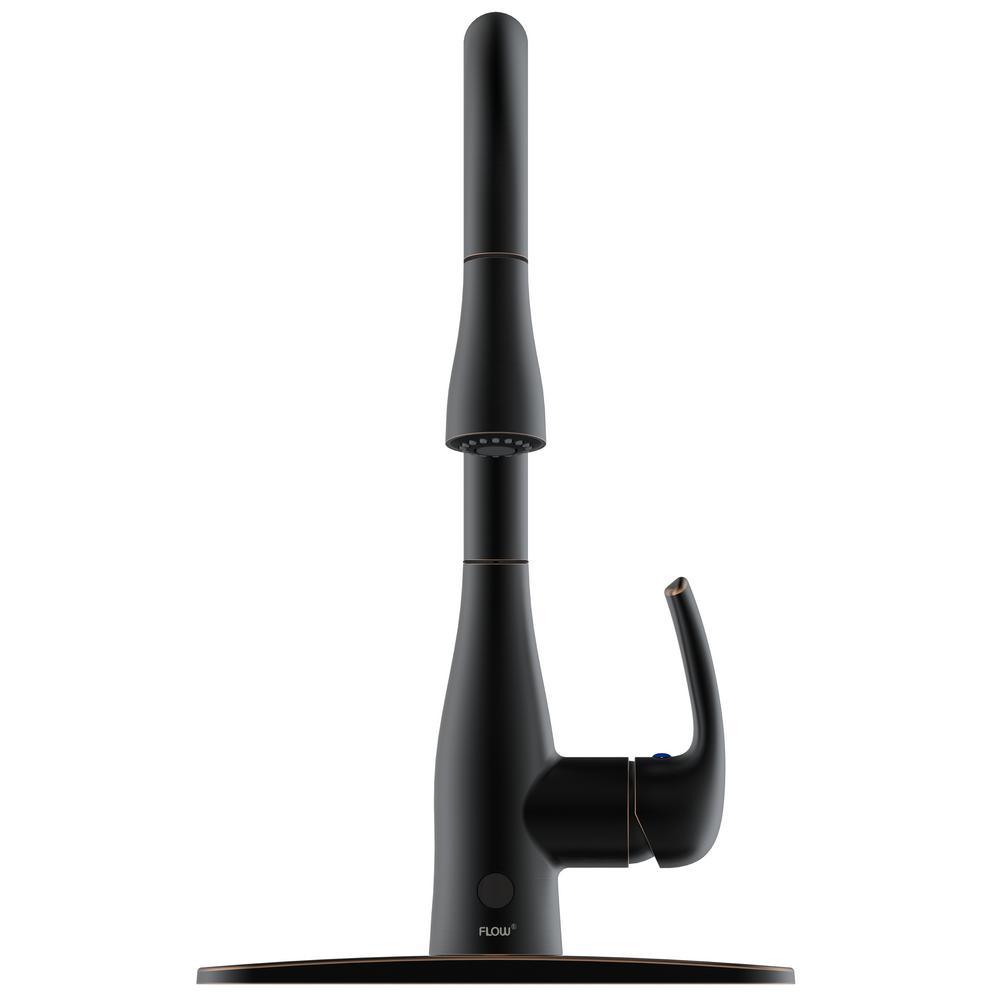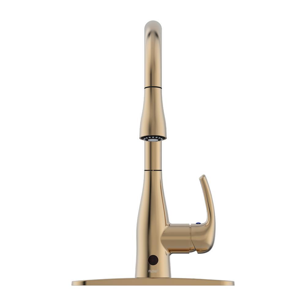 Enjoy the latest in kitchen faucet technology with the Flow Series Single-Handle Pull-Down faucet. The hands-free motion sensing technology makes washing up quicker and more sanitary. Set the temperature and use the sensor to control the water flow. The built-in timer automatically turns the water flow off after 3 minutes. Retracting the faucet's pull-down hose head after use will also automatically shut off water flow. The simple and easy installation does not require any hard wiring but features a quick insertion method installation. Since it is not hardwired, it can function normally even during a power outage.