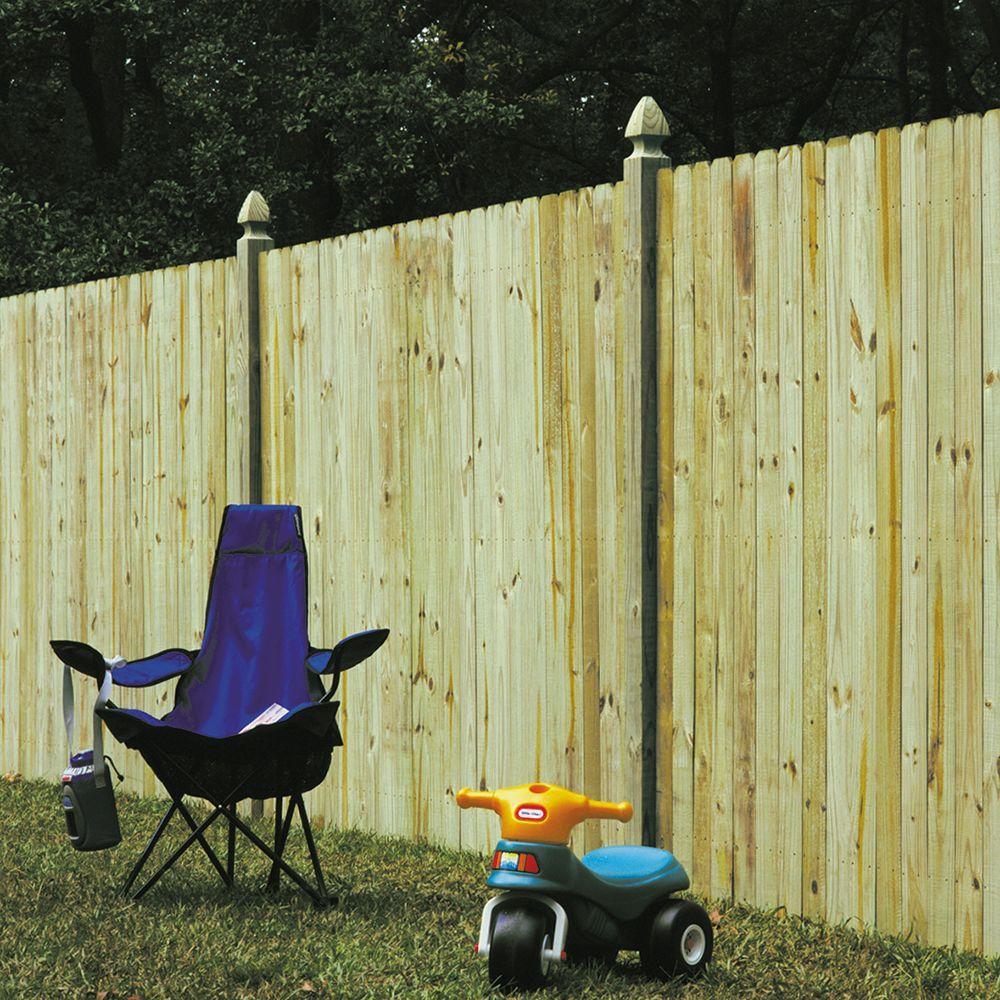 This 8 ft. red pine picket is pressure-treated for long life and has a traditional dog-ear design that adds charm to almost any outdoor space. It can be painted or stained. It has a limited lifetime warranty.
