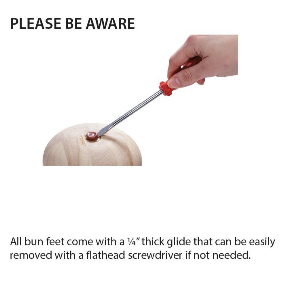 Each furniture Bun Foot leg has passed a quality control process to ensure that you receive a product with superior craftsmanship. American Pro Decor's Bun feet furniture legs come with a 1/4 in. Thick slide on the bottom making it easier to move furniture around. Most importantly, they have a pre-installed 5/16 in. -18 in. thread hanger bolt for fast and easy installation on furniture. Bun feet add a decorative accent to any furniture. They make an excellent choice to restoring and providing a different appearance to any furniture. To coordinate your desired finish, our Bun feet are Unfinished, smoothly sanded and ready for painting or staining.