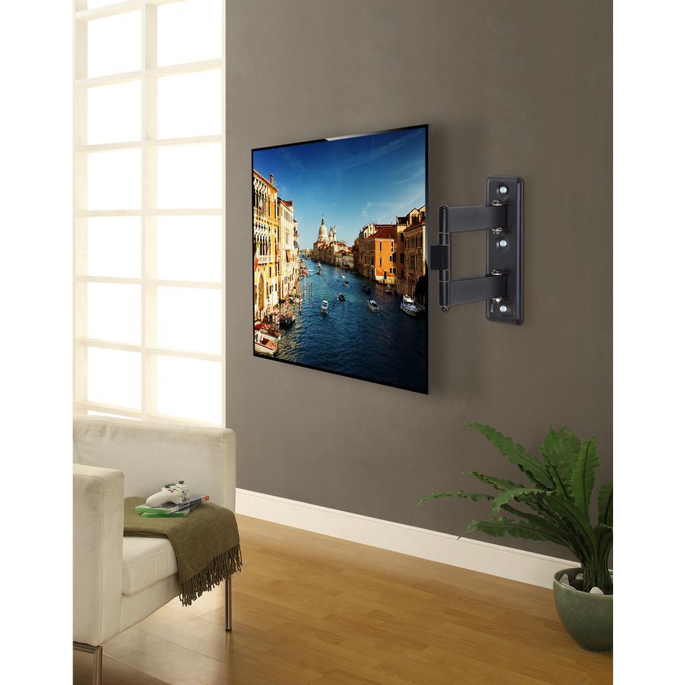 Get the best seat in the house and achieve the perfect viewing angle with the Full Motion TV Wall Mount from Commercial Electric. Mount your television securely to the wall and allow for multiple viewing angles with 180 degree swiveling capacity and 15 tilt options. Made for televisions from 26 to 70 in., this versatile mount can handle up to 100 lbs. Pulls out to 19.6 in. and smoothly returns back in to 3.3 in. Installing and adjusting your wall mounted television has never been easier. Offers a quick and easy installation on a single wood stud.