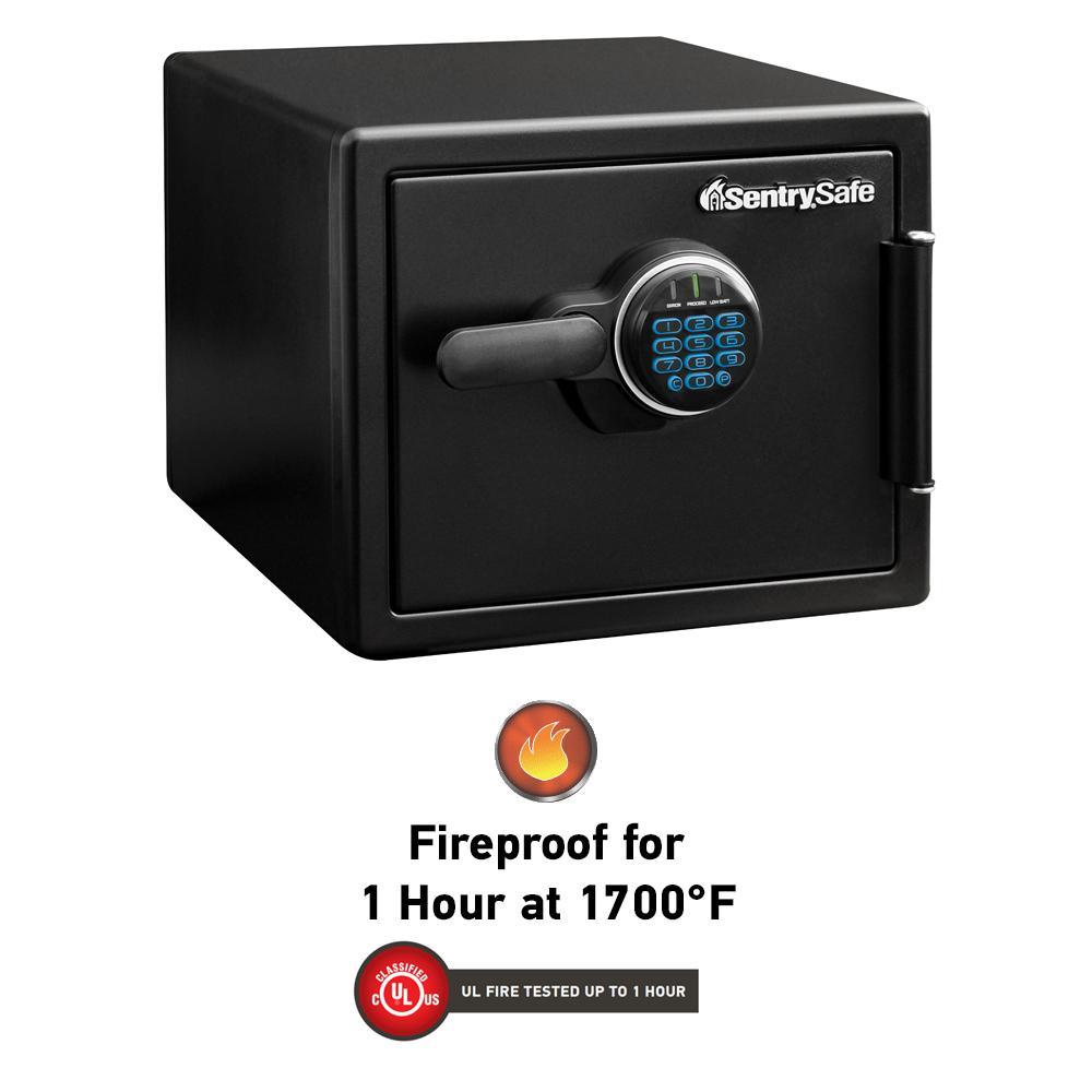 Fireproof safe is UL Classified to endure 1 hour at 1700 degrees F and keep interior temperatures safe for irreplaceable documents, valuables, DVDs, and USBs; ETL Verified to withstand a 15 ft. fall during a fire and remain closed