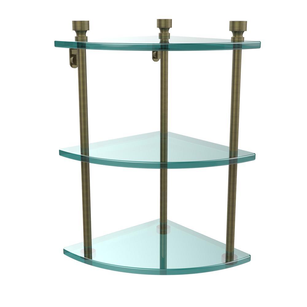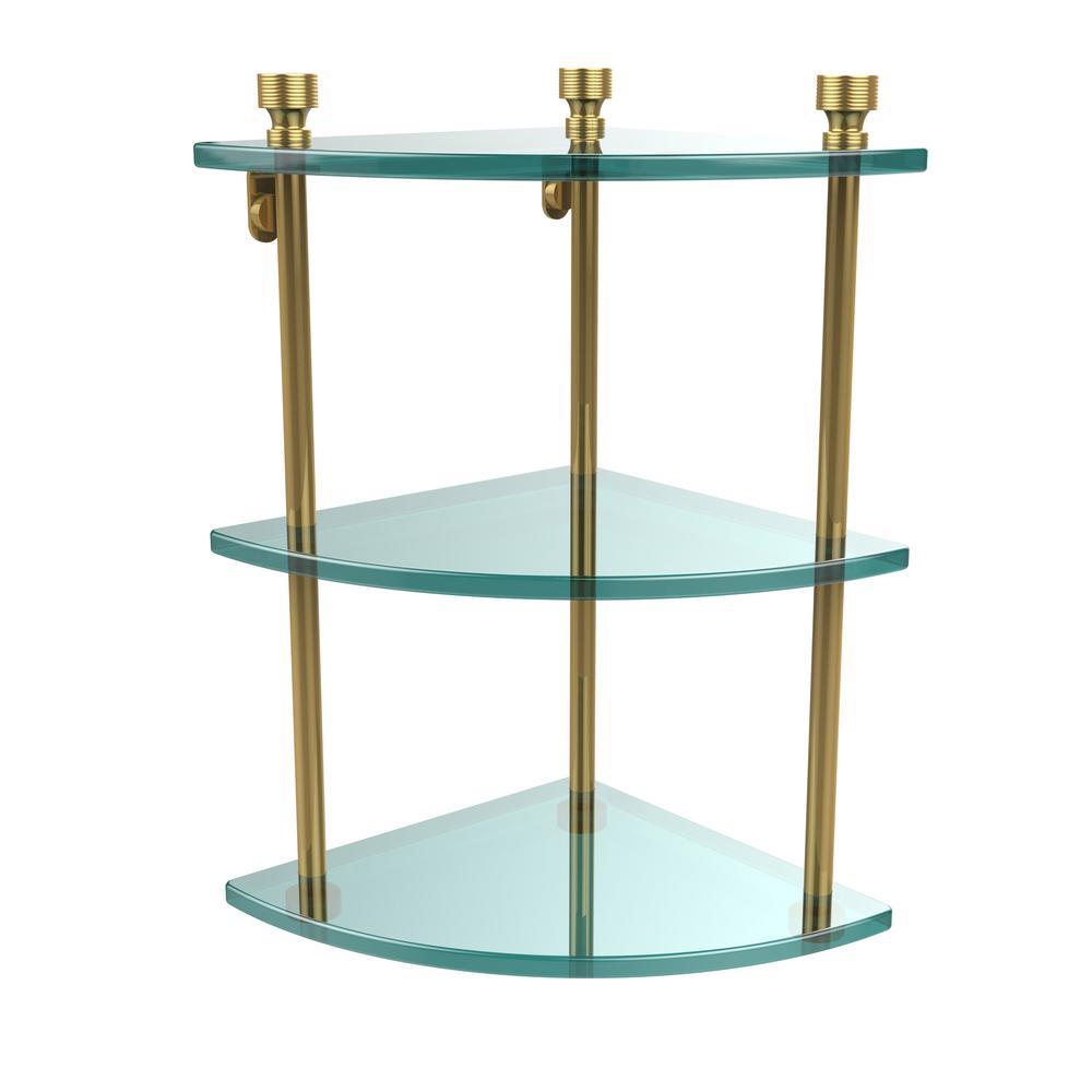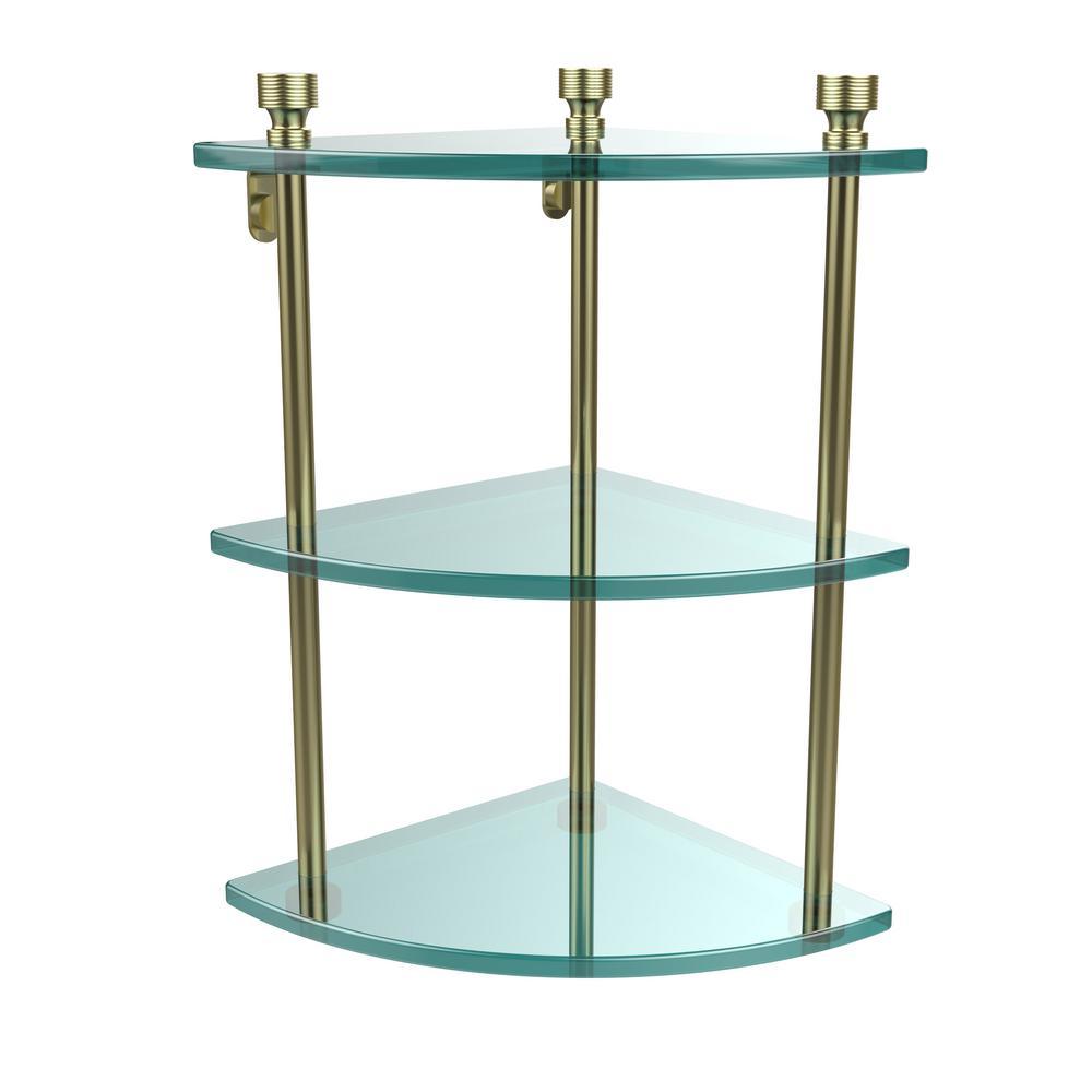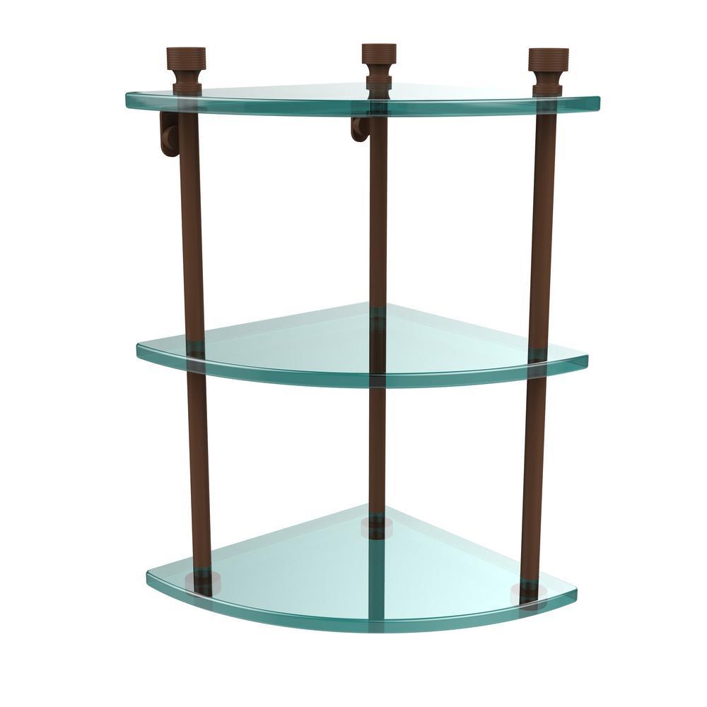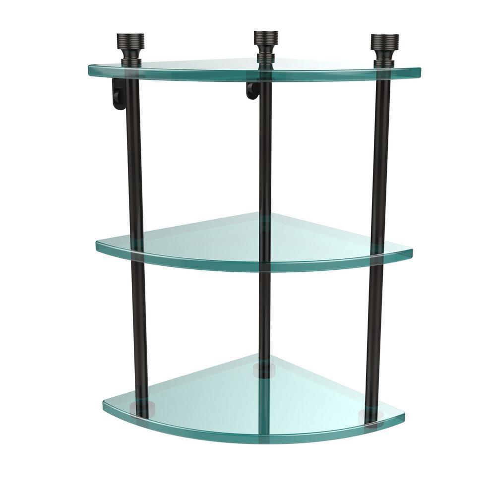 Foxtrot 8 in. L x 15 in. H x 8 in. W 3-Tier Corner Clear Glass Bathroom Shelf in Brushed Bronze