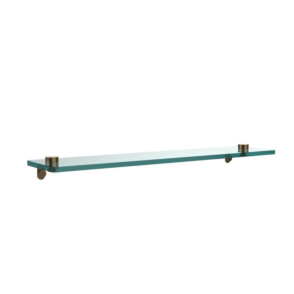 Keep your space neat and tidy with the Allied Brass Glass Bathroom Shelf. This shelf has a glass construction, enabling a greater amount of light to go through, creating a brighter effect. It is equipped with mounting accessories and features concealed screws, reducing the appearance of over-cluttering. It has a corrosion-resistant design, tolerating damp environments, making it a reliable accessory for your bathroom. With brass hardware, this shelf resists damage when exposed to damp environments, ensuring a long-lasting bathroom fixture. Its fixture has a satin chrome coating, offering increased durability with a decorative appearance. It has a contemporary style, achieving a refreshed and on-trend look.