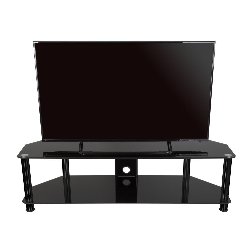 The SDC-BB family is a simple, attractive and versatile series of A/V stands and tables, in multiple sizes. BB indicates that the stands have Black legs and Black glass shelves. The high quality, easy to assemble stands blend with virtually any decor. The AVF SDC1400CMBB-A supports flat panel TVs up to 65 in. The black tempered glass and durable black legs modernize any space while the angled corners provide multiple room placement options including into corners to maximize space and viewing angles. Middle and bottom shelves are perfect for AV components such as Digital Receivers, DVRs, Blu-ray, Gaming Consoles, Speakers, Apple TV, Sonos devices, etc. Cable management through the center column delivers a tidy appearance.