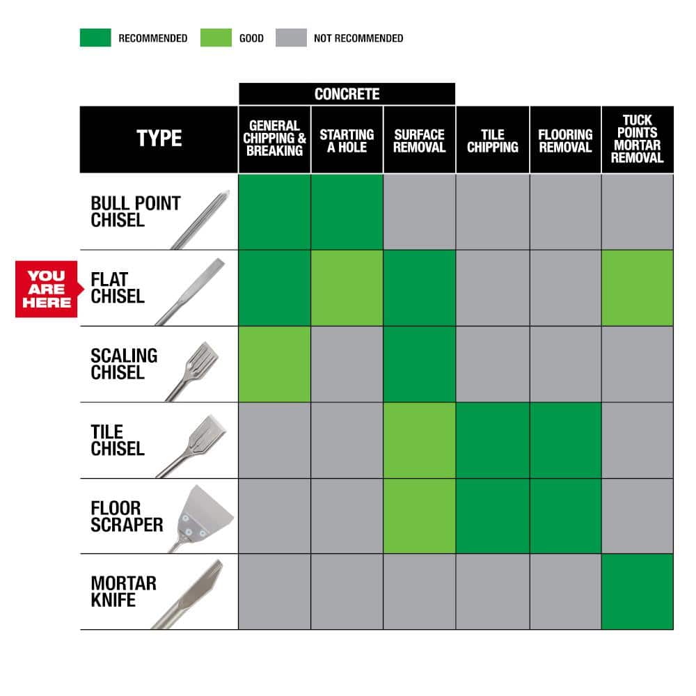 Upgrade your rotary hammer with Milwaukee’s longest-lasting flat chisel and power through concrete with confidence.