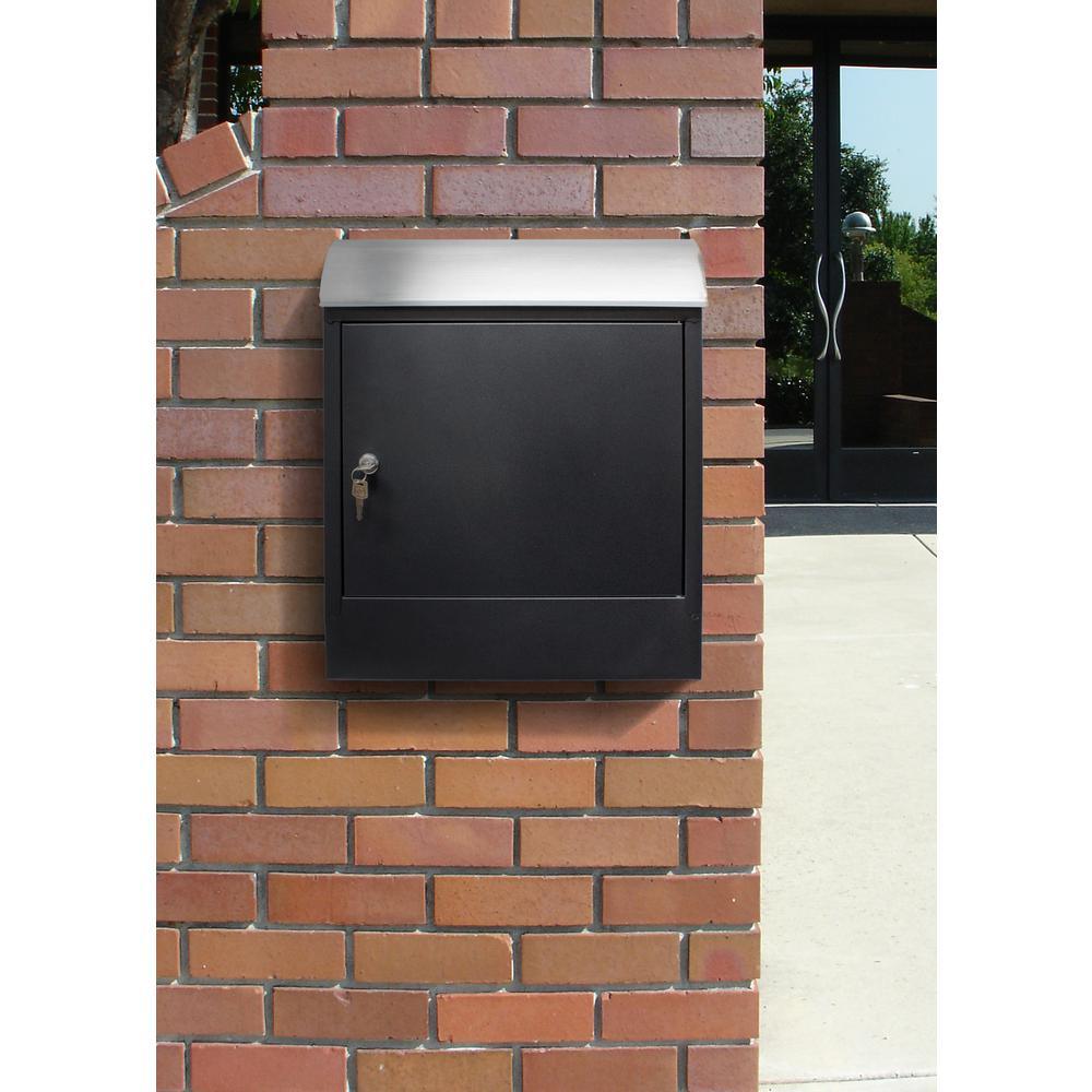 Winfield Selma is a rich and roomy wall mount mail/parcel box which can hold numerous pieces of mail or small parcel packages. Parcel/mailbox is made of galvanized steel with a tough black powder coat finish and features a stainless steel top cover. Front locking door swings open for easy parcel or mail retrieval, a lock and set of keys are included. Maximum parcel size: 14-1/4 in. x 7-3/4 in. x 4-1/4 in.