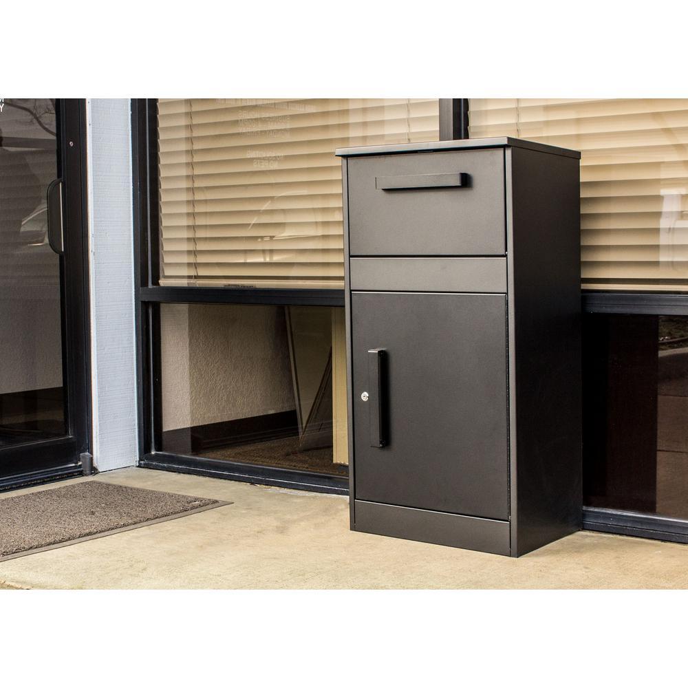 The Winfield Parcel Defender is a freestanding locking parcel mailbox which can hold several small packages and mail. Built from thick heavy gauge galvanized steel, parcel box has a tough black powder coated finish and locking retrieval door has a handle for easy open and shut. Incoming parcel door also has a handle for easy open and shut and can receive a maximum parcel size of: 16 in. x 11-3/4 in. x 8-1/4 in. Parcel opening: 16-1/2 in. x 13 in. x 7-1/2 in. Parcel box includes lock and a set of keys.