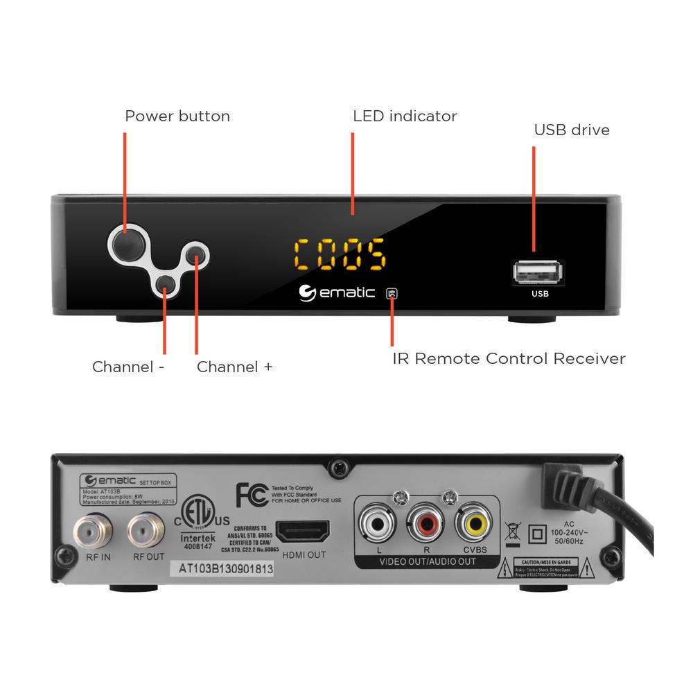 The Ematic AT103 Digital Converter box allows your TV without a digital tuner to receive new digital broadcasts. Record shows in real time or set timers for when to start and stop recording. Programs will be saved to your S drive. View pictures, play music, or watch movies and shows from your personal S drive.