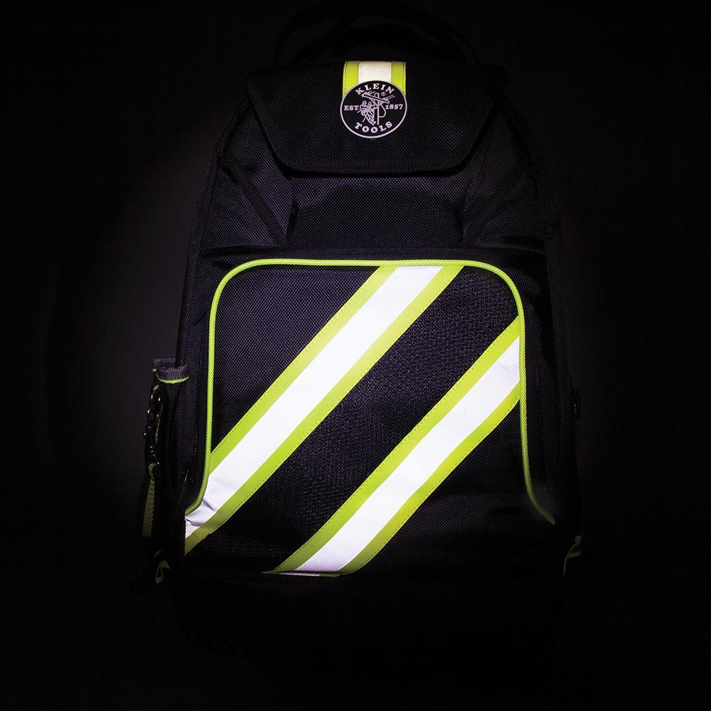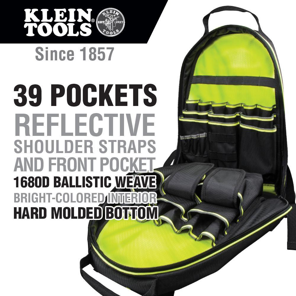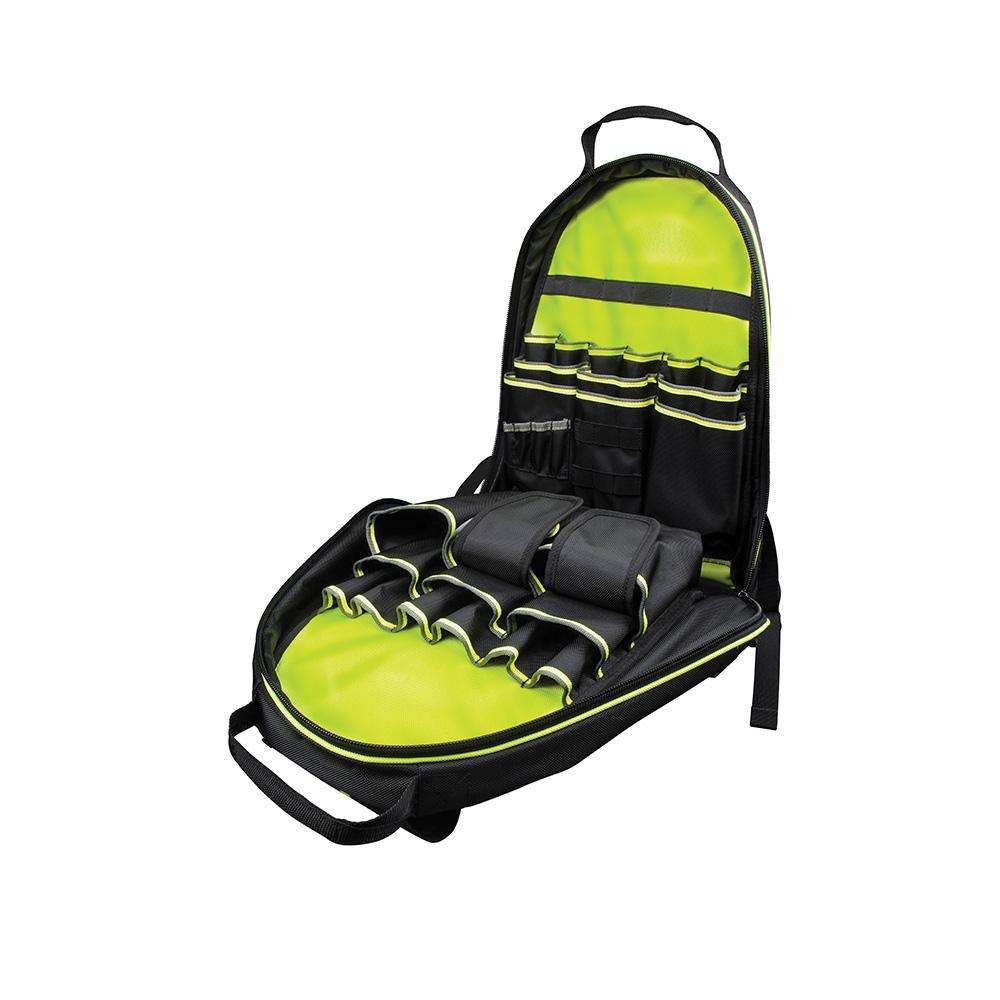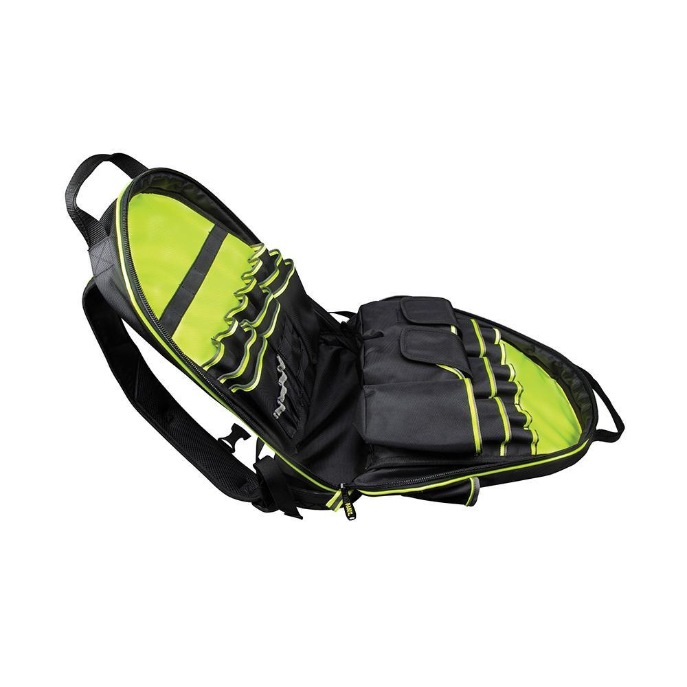 Keep your hands free and your tools organized and easily accessible with the new Tradesman Pro Backpack made with tough 1680d ballistic weave for durability. The high-visibility interiors make it easy to find small parts and tools; the outer reflective strips create greater visibility in low light conditions.