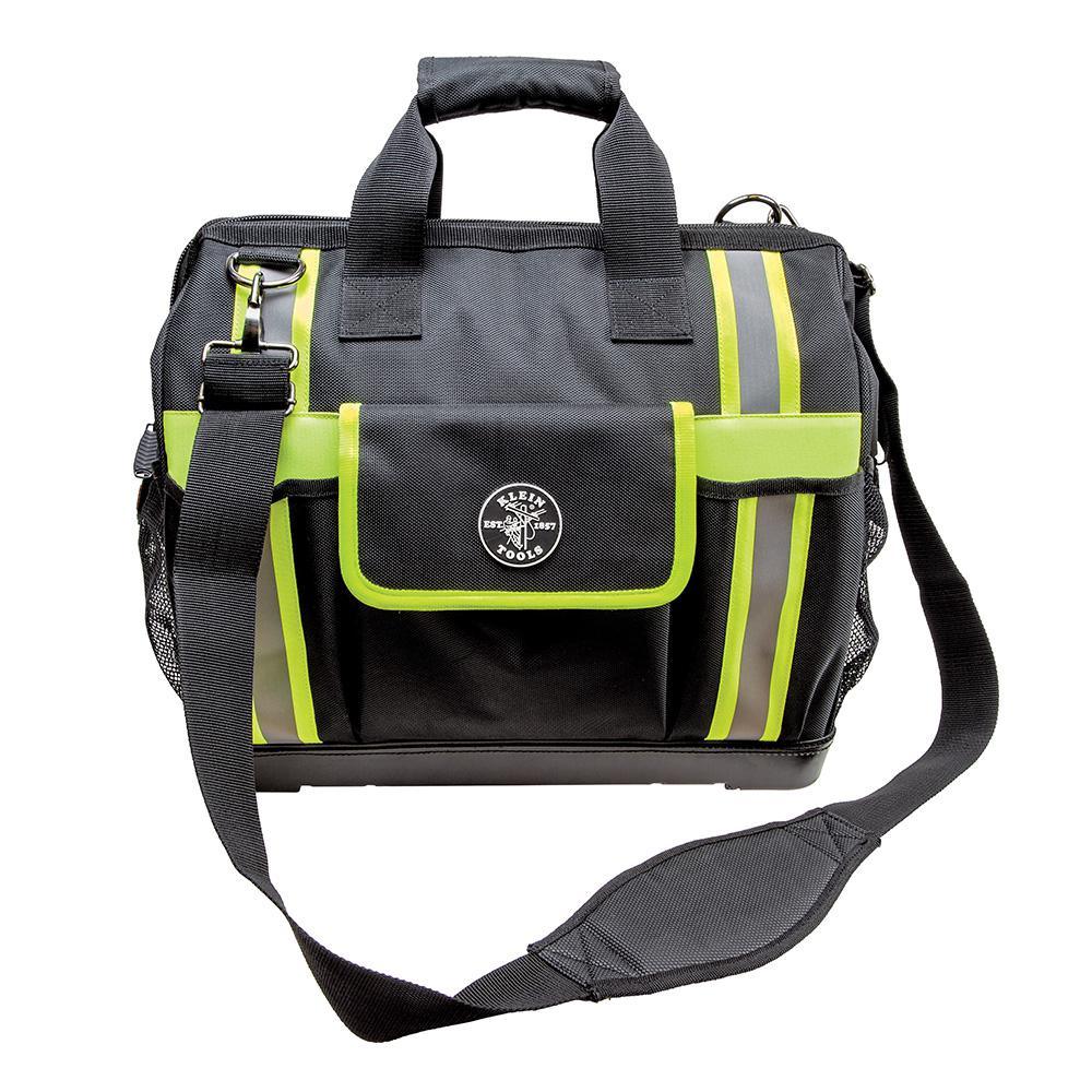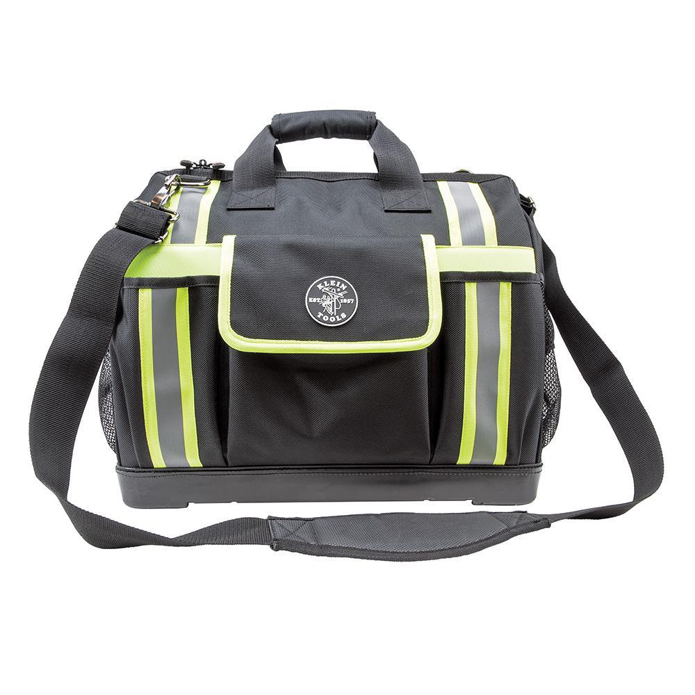 With the Tradesman Pro™ Tool Bag you can keep your hands free and your tools organized and easily accessible. The high-visibility interiors make it easy to find small parts and tools; the outer reflective strips create greater visibility in low light conditions.
