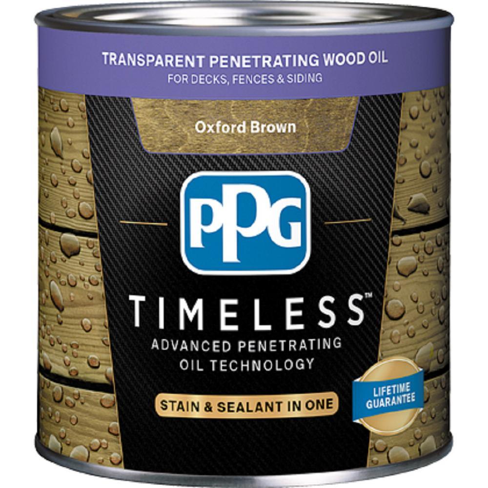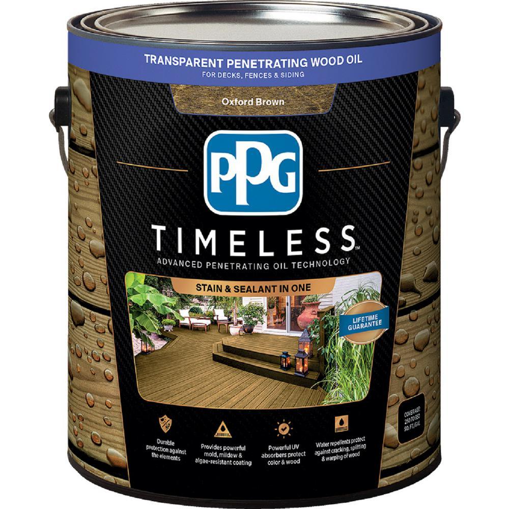 Brighten your outdoor space with PPG TIMELESS Penetrating Wood Oil. This enriching stain is both stain and sealant, eliminating the need for separate products. The oil brings vivid color to decks, fences and siding. It also offers resistance to mold, mildew, UV damage, cracking and warping as it protects and strengthens wood fibers.