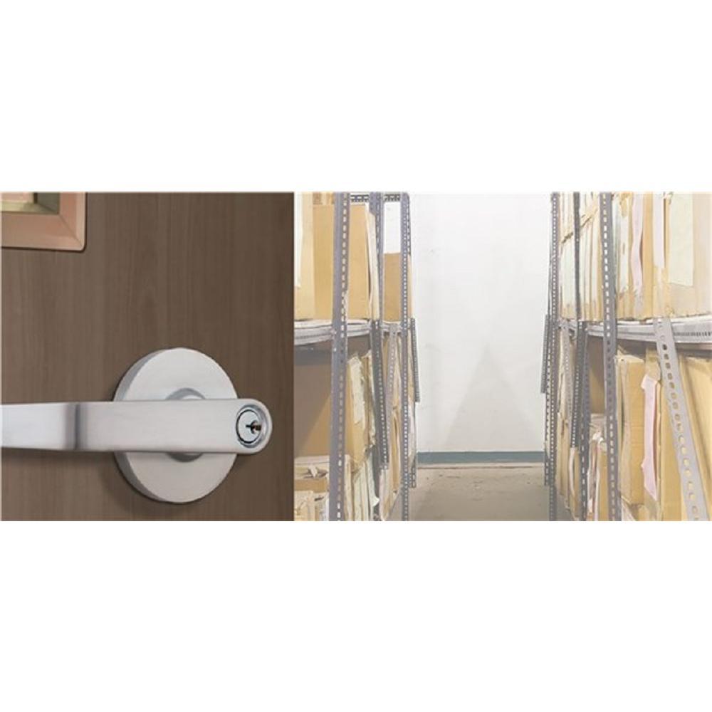The storeroom function always requires a key to open the door from the outside, the inside remains unlocked. Constructed with a robust cylindrical locking mechanism, this lock is designed for heavy use doors. It is extremely robust mechanically and has a durable finish. This lock is also versatile and can fit doors from 1-3/8 in. to 2 in. T. It is UL listed for 3 hour doors. It meets or exceeds ANSI Grade 2 standards and is ADA compliant.