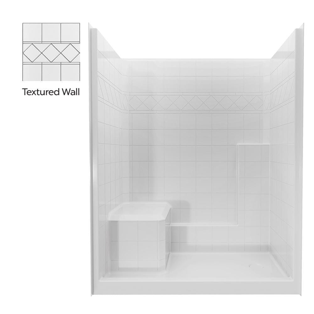 Ella Standard 36 in. x 60 in. x 77 in. 1-Piece Low Threshold Shower Stall in White with LHS Molded Seat and Right Drain