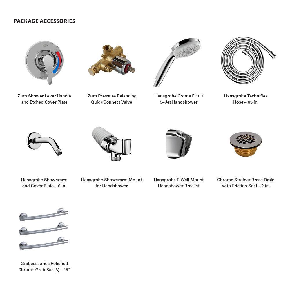 All the Ella’s Bubbles Accessible Shower Stalls are conveniently packaged with various pre-selected, unique fixtures and shipped pre-assembled in one piece. The Ella low threshold walk in showers stalls are great for any user in need of safer bathing and comes with a 4 in. high threshold to provide easy access. The shower stall walls are molded using a spray on acrylic finish called Acrylx, reinforced with wood and fiberglass, resulting in a rigid shower surround with easy-to-clean, smooth interior surface. The finish features a stylish simulated tile pattern for the walls and an anti-slip texture for the shower base floor. Finishes are available in three color options (white, bone or biscuit) and in a variety of fixture package options. Due to the shower wall reinforcement, the wall is durable enough to withstand the installation of additional accessories, such as grab bars and shower doors. Available in three sizes, 60×36, 60x33 and 48x37 with a left or right-side molded seat. Option to choose 10 different packages; Standard, Standard Valve Kit, Classic Grab Bar Kit, Classic Valve Kit, Ultimate Grab Bar Kit, Ultimate Valve Kit, White Grab Bar Kit, White Grab Bar Valve Kit, Imperial Grab Bar Kit, Imperial Valve Kit. Each package offers various accessories, either pre-installed (Classic Grab Bar Kit and White Grab Bar Kit) or Loose (all other packages) to accommodate your showering needs. Showers are manufactured in the United States with a Limited Lifetime Warranty.