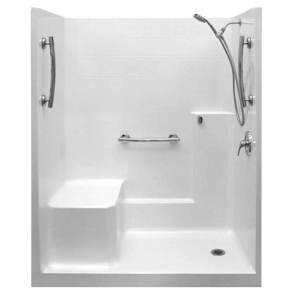 Ultimate-SA 36 in. x 60 in. x 77 in. 1-Piece Low Threshold Shower Stall in White, Shower Kit, Molded Seat, Right Drain