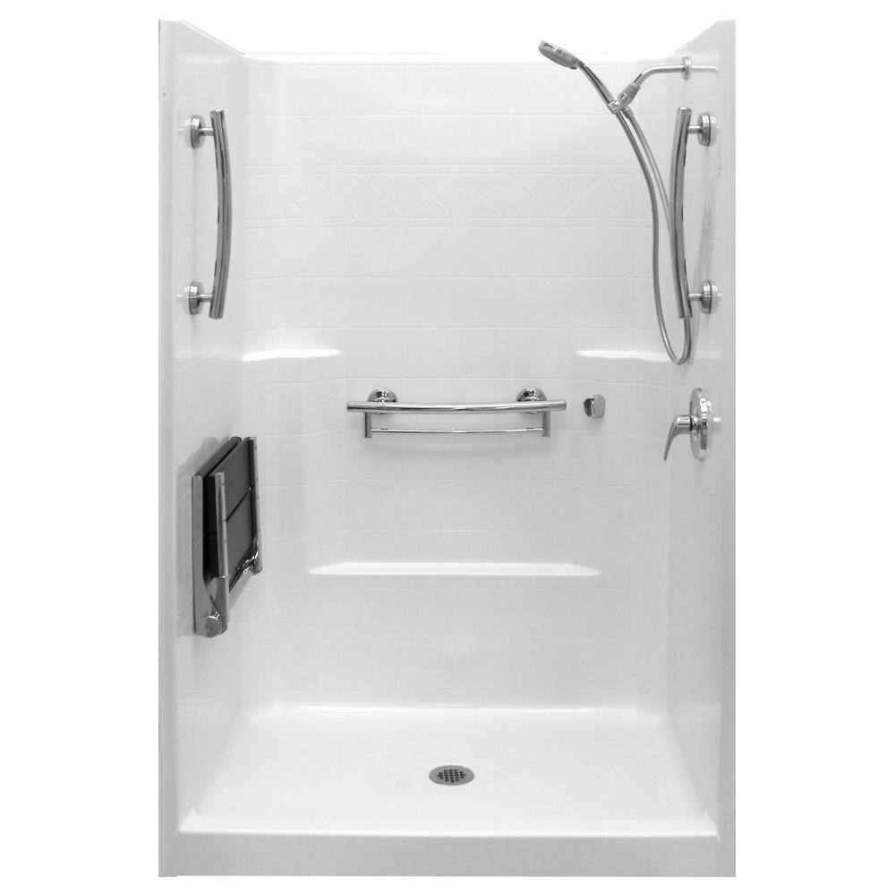 All the Ella’s Bubbles Accessible Shower Stalls are conveniently packaged with various pre-selected, unique fixtures and shipped pre-assembled in one piece. The Ella low threshold walk in showers stalls are great for any user in need of safer bathing and comes with a 4 in. high threshold to provide easy access. The shower stall walls are molded using a spray on acrylic finish called Acrylx, reinforced with wood and fiberglass, resulting in a rigid shower surround with easy-to-clean, smooth interior surface. The finish features a stylish simulated tile pattern for the walls and an anti-slip texture for the shower base floor. Shower finishes are available in three color options (white, bone or biscuit) and in a variety of fixture package options. Due to the shower wall reinforcement, the wall is durable enough to withstand the installation of additional accessories, such as grab bars, seats and shower doors Available in three sizes, 60×33, 48×37, 42×42 and 11 different packages; Standard, Standard Valve Kit, Classic Grab Bar Kit, Classic Valve Kit, Ultimate Grab Bar Kit, Ultimate Valve Kit, White Grab Bar Kit, White Grab Bar Valve Kit, Imperial Grab Bar Kit, Imperial Valve Kit and Imperial Valve and Seat Kit. Each package offers various accessories that are either pre-installed (Classic Grab Bar Kit and White Grab Bar Kit) or Loose (all other packages) to accommodate your showering needs. The shower is manufactured in the United States, with a Limited Lifetime Warranty.