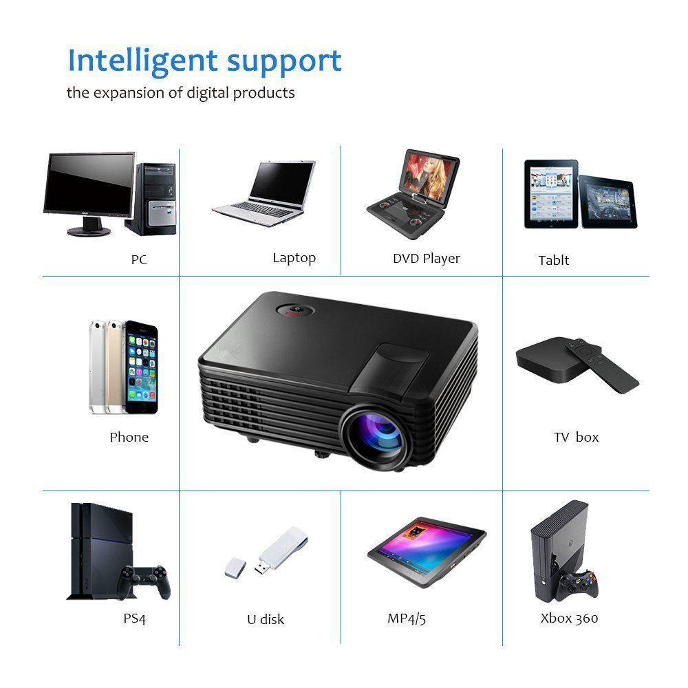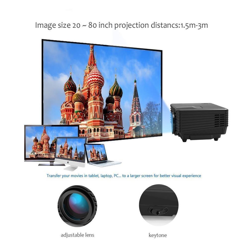 The proHT Mini Projector puts the cinema adventure right in your hands. Experience and enjoy the visual feast as the proHT Mini Projector takes everyday entertainment to a new level. From watching sports in your hotel or the news to playing videogames at an apartment, each becomes a blockbuster event. Use it with your home entertainment system or set it up for parties, game nights or business presentations. Its multimedia function and small size leaves the only limitation your imagination.