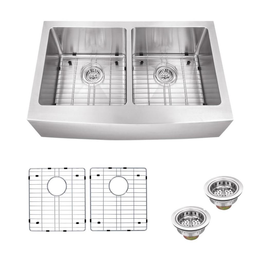 Farmhouse Apron Front 33 in. 16-Gauge Stainless Steel Double Bowl Kitchen Sink in Brushed Stainless